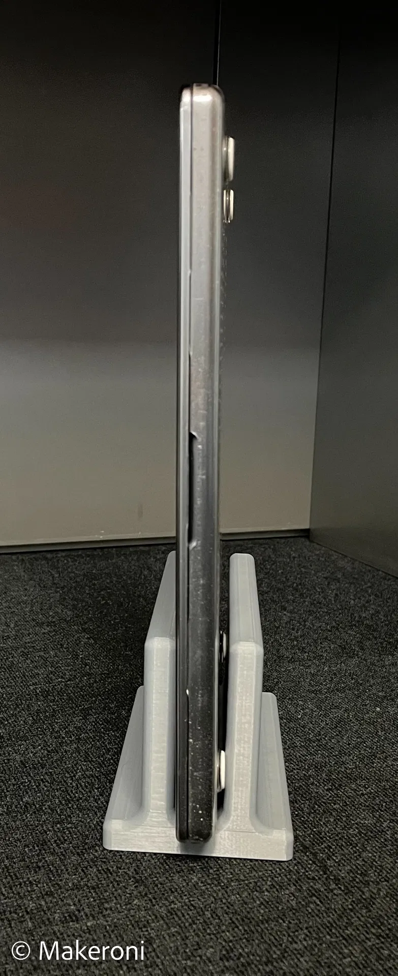 Giá đỡ laptop dọc vừa cho MacBook Pro M1 Pro (A2485) đời 2021 - 2022, màn hình 16" kể cả khi có ốp lưng MOSISO Hard Case và cả chân đế cao su! Lý do mà chân đế cao su cũng vừa là vì mình muốn đặt MacBook bằng cạnh ngắn vào giá đỡ. Khe hở cho MacBook là 25 mm, kích thước đế giá đỡ là (R x D x C) 100 x 200 x 110 mm. Nếu muốn tăng thêm trọng lượng, bạn có thể đổ đầy bi kim loại vào đế. Cách này giúp tiết kiệm thời gian và nhựa in. Dữ liệu in: Chất liệu PLA Chất lượng 0.30 mm draft Infill 5 % Không cần brim hoặc raft, nhưng bạn có thể tùy chọn Thời gian in 9h9' Filament 205 g