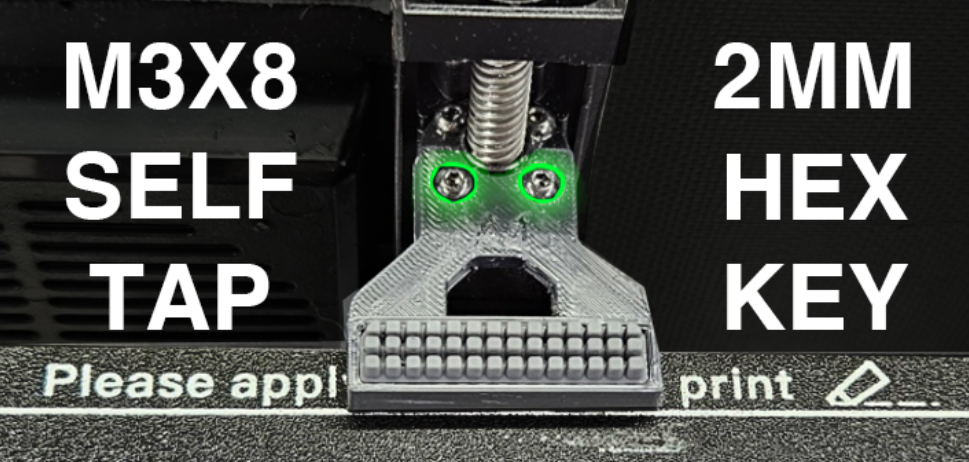 6 - Hạ thấp giường của bạn một nửa để có không gian làm việc. Sử dụng chìa khóa Allen 2mm đi kèm với máy in của bạn hoặc tua vít lục giác 2mm để lắp giá đỡ bằng 2 vít tự khai thác M3x8 hiện có ở phía sau.