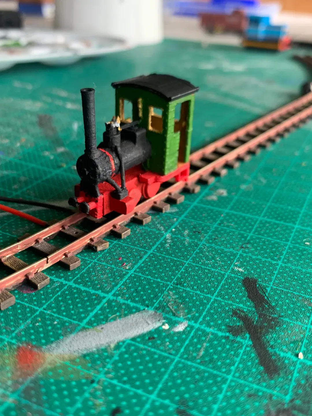 Đầu máy kiểu Krauss XIVe cho khung gầm TU-Koppel A. Buồng đốt rỗng nên bạn có thể đổ đầy chất lỏng trọng lực vào đó để tăng sức kéo cho cỗ máy nhỏ này. Vẫn đang trong quá trình hoàn thiện và có lẽ tôi sẽ làm thêm vài chi tiết cho em nó nữa. Dùng dây 0.4mm cho tay vịn. (Đây là đầu máy duy nhất của tôi cho TU-Koppel cho đến nay mà bạn phải cắt bỏ một trong những vòng tròn ở phía trước)