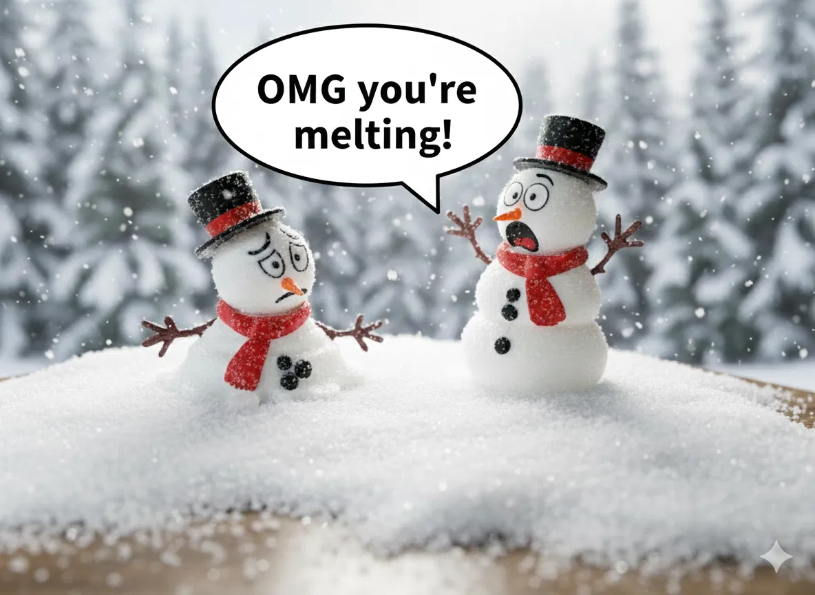 • Hai mô hình người tuyết độc đáo với các tư thế tan chảy khác nhau