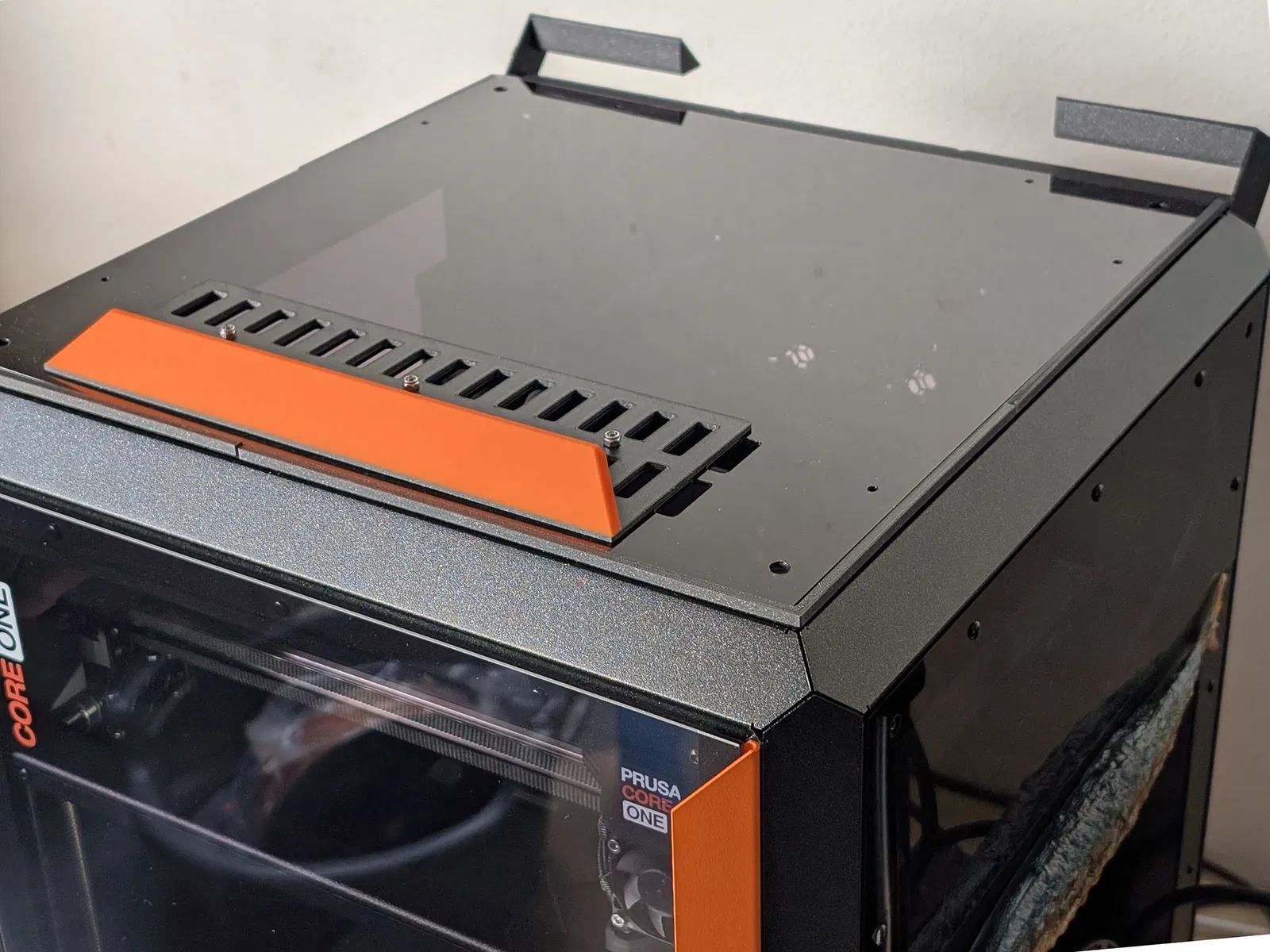 Mô hình chế tạo này giúp anh em dễ dàng cầm và cất giữ nắp trên của máy in Prusa Core One. Bộ phận bao gồm tay cầm, móc giữ góc và khung, giúp việc thao tác với máy in thuận tiện hơn, đồng thời cung cấp giải pháp lưu trữ thông minh.