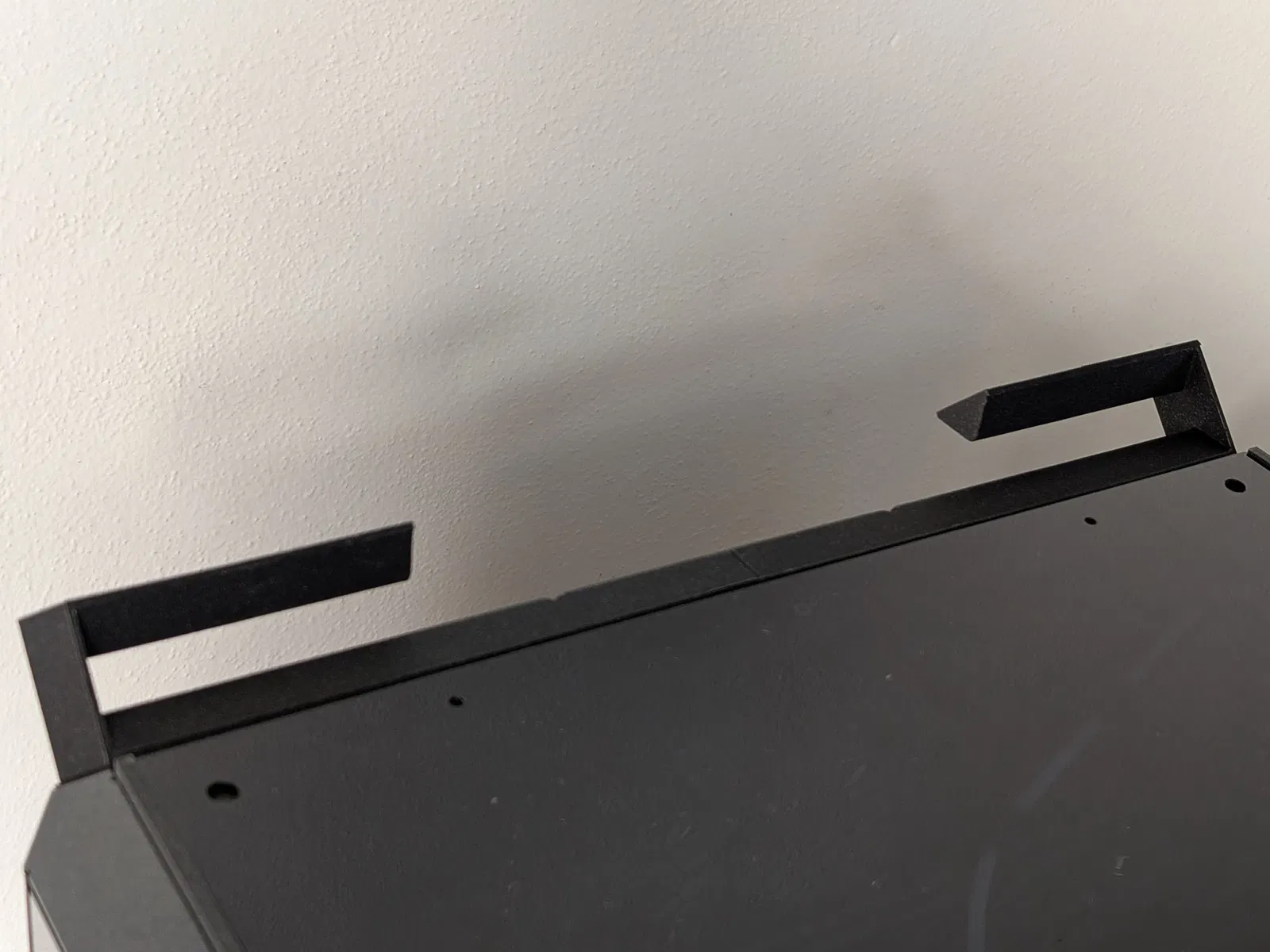 Bộ phận còn lại - cái móc - in 2 cái và gắn vào cạnh trên phía sau của máy in. Cái bộ phận đôi này cho bên trái và bên phải được nối với nhau bằng một cái chốt nhỏ (bộ phận thứ ba) để tăng độ cứng ở bên trong. Trên máy in, nó được giữ cố định bằng ốc với đai ốc chống trượt trong các lỗ có sẵn trên máy. Thiết kế này dùng ốc đầu lục giác 3 mm, dài ít nhất 2.5 cm.