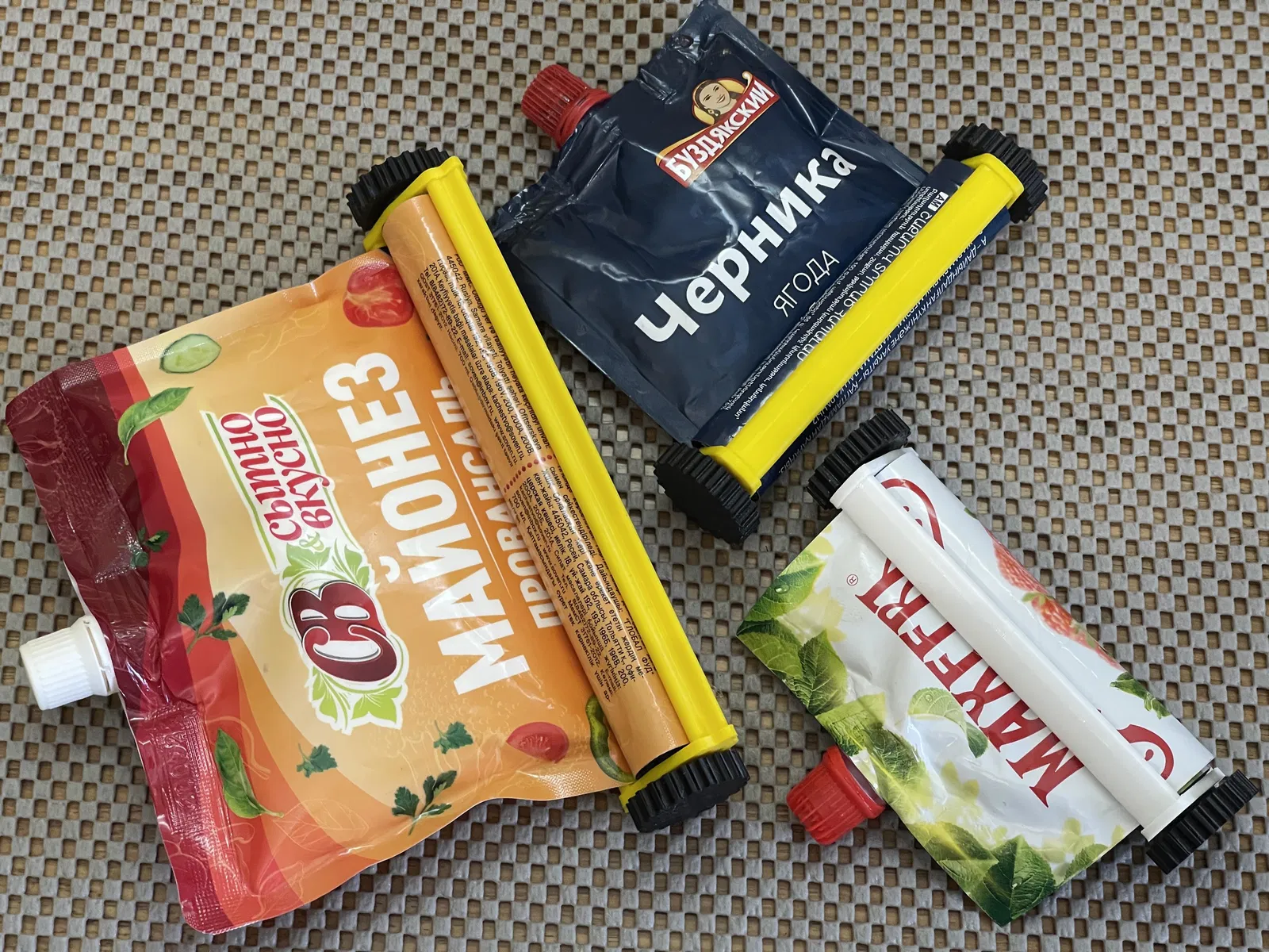 Tui không thích khi gói sốt mayonnaise còn chưa tới nửa gói, vì vắt ra nó bất tiện với lại cất cũng chiếm nhiều diện tích. Vì vậy, tui tìm mấy cái mô hình để giải quyết vấn đề này lâu lắm rồi mà không tìm được cái nào ưng ý. Thế là phải tự chế. Mấy bạn xem tui làm nè. Nói chung tui cũng ưng với cái thành quả này.