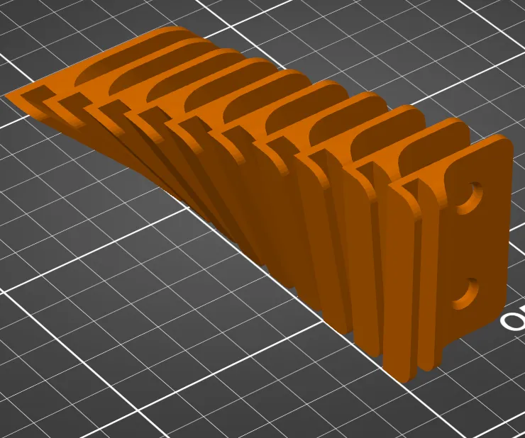 Các tệp STLs kèm theo bao gồm mọi gia số 5° từ 0°-45°, và được gán nhãn với góc mà chúng hỗ trợ. Giá đỡ nghiêng tiêu chuẩn có một khe thông hoàn chỉnh, trong khi các giá đỡ được gán nhãn ‘trái’ và ‘phải’ có một điểm dừng tích hợp cho góc của kệ để ngăn nó trượt theo một hướng.