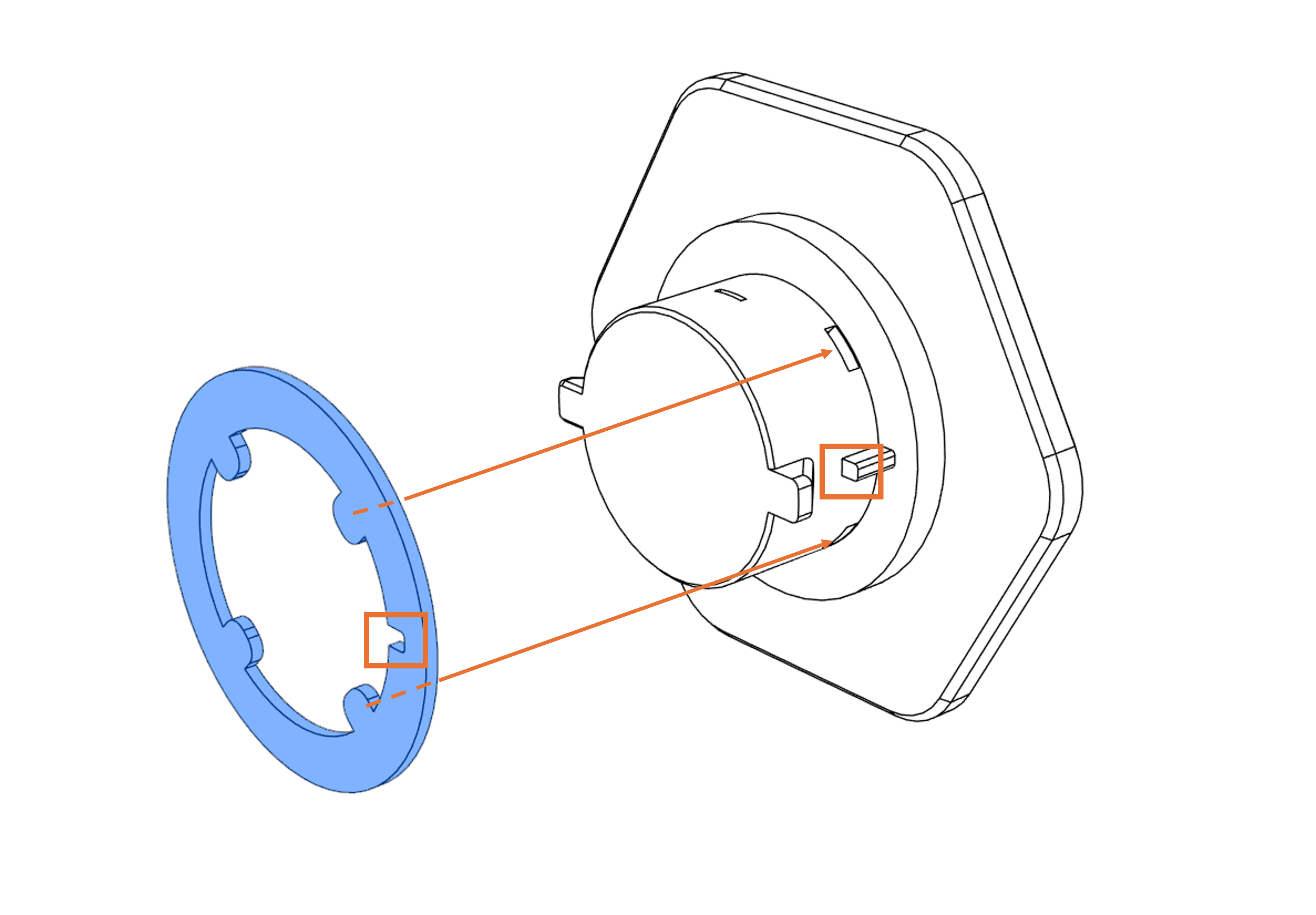 Gắn gioăng lên tay cầm. Đảm bảo nó khớp chặt và kiểm tra hướng như hình:
