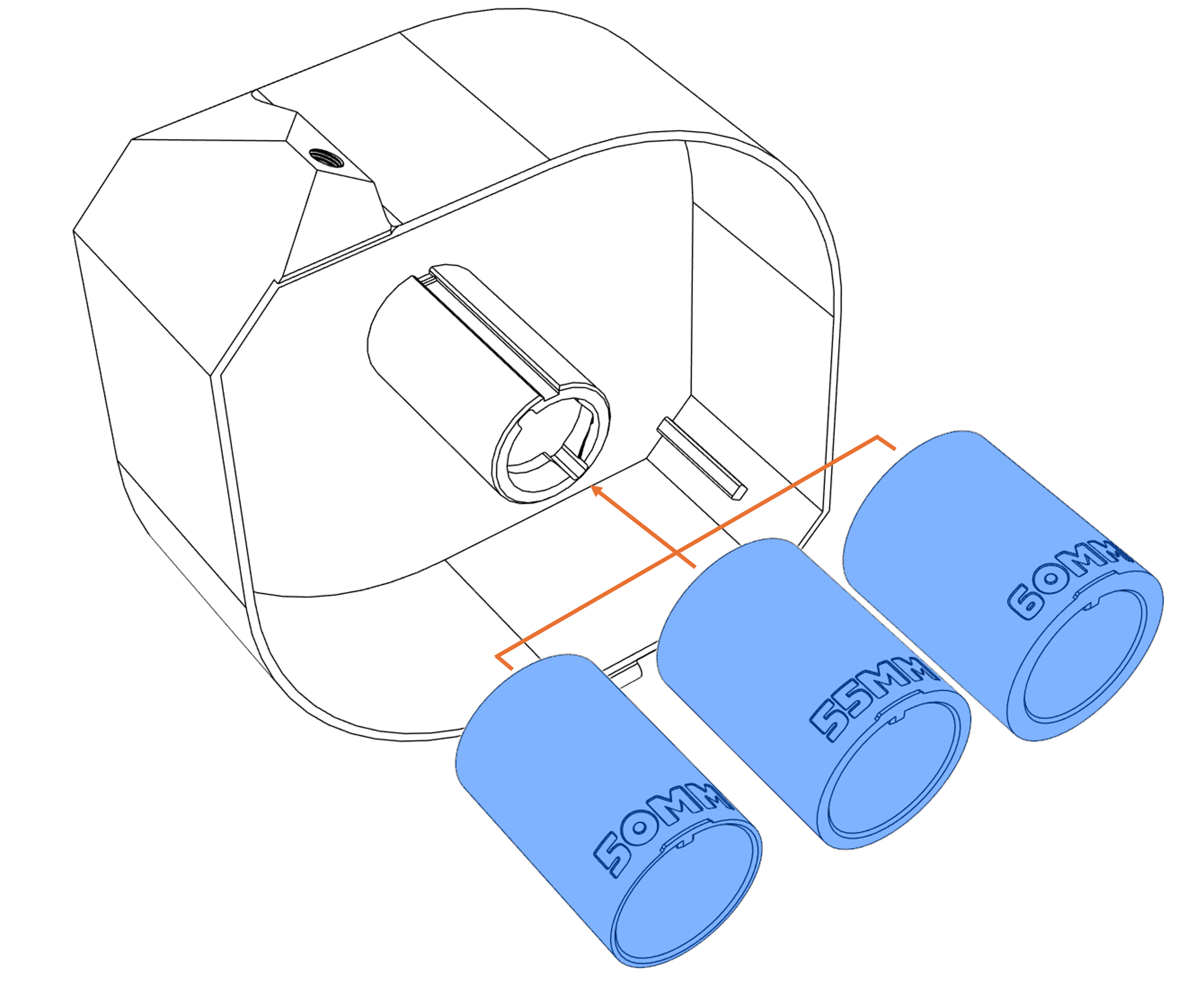 - 3 bộ chuyển đổi cho cuộn sợi với đường kính trong khác nhau (50mm, 55mm và 60mm) để giữ cuộn sợi ở vị trí trung tâm nhất có thể trong hộp chống ẩm