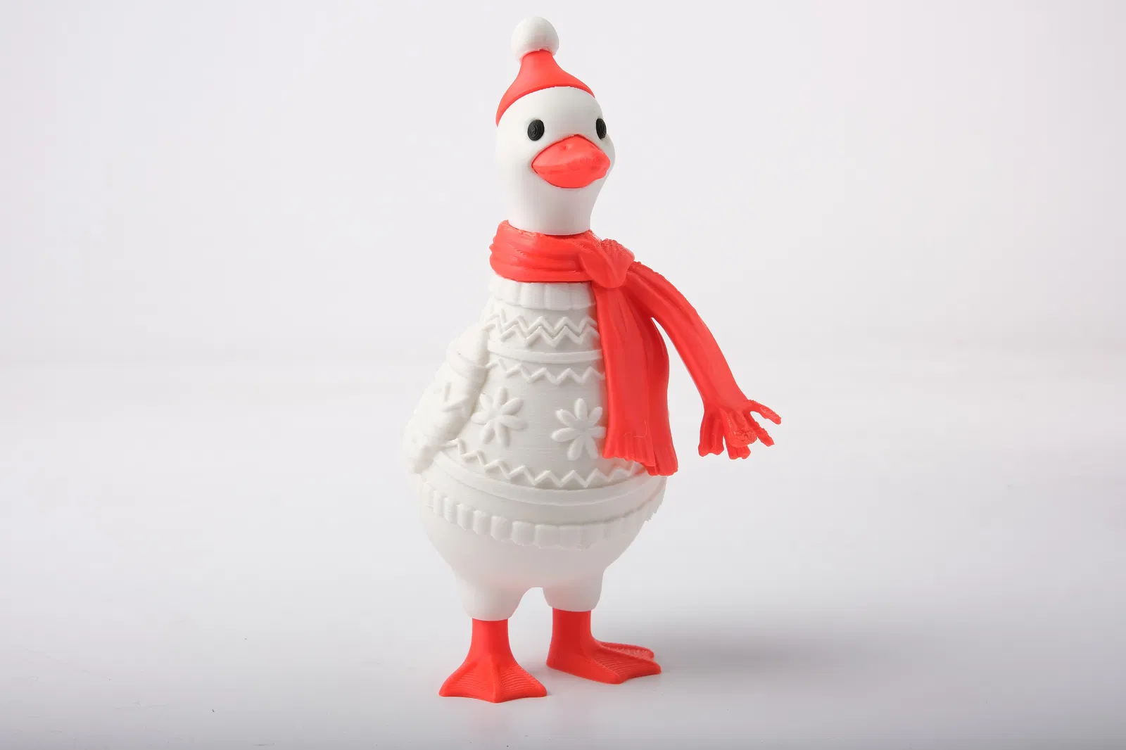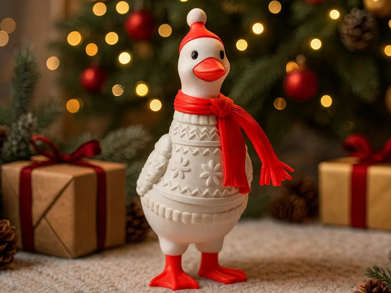 Xin chào chú ngỗng mùa đông dễ thương và đáng yêu này, diện một chiếc áo len mùa lễ hội có họa tiết và một chiếc khăn choàng đỏ tươi. Với chiếc mũ mùa đông vui nhộn, đôi mắt biểu cảm và các chi tiết lễ hội, nhân vật này mang đến sự ấm áp và hài hước nhẹ nhàng cho bất kỳ đồ trang trí Giáng sinh nào.
