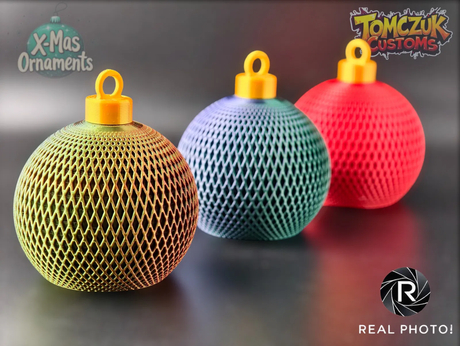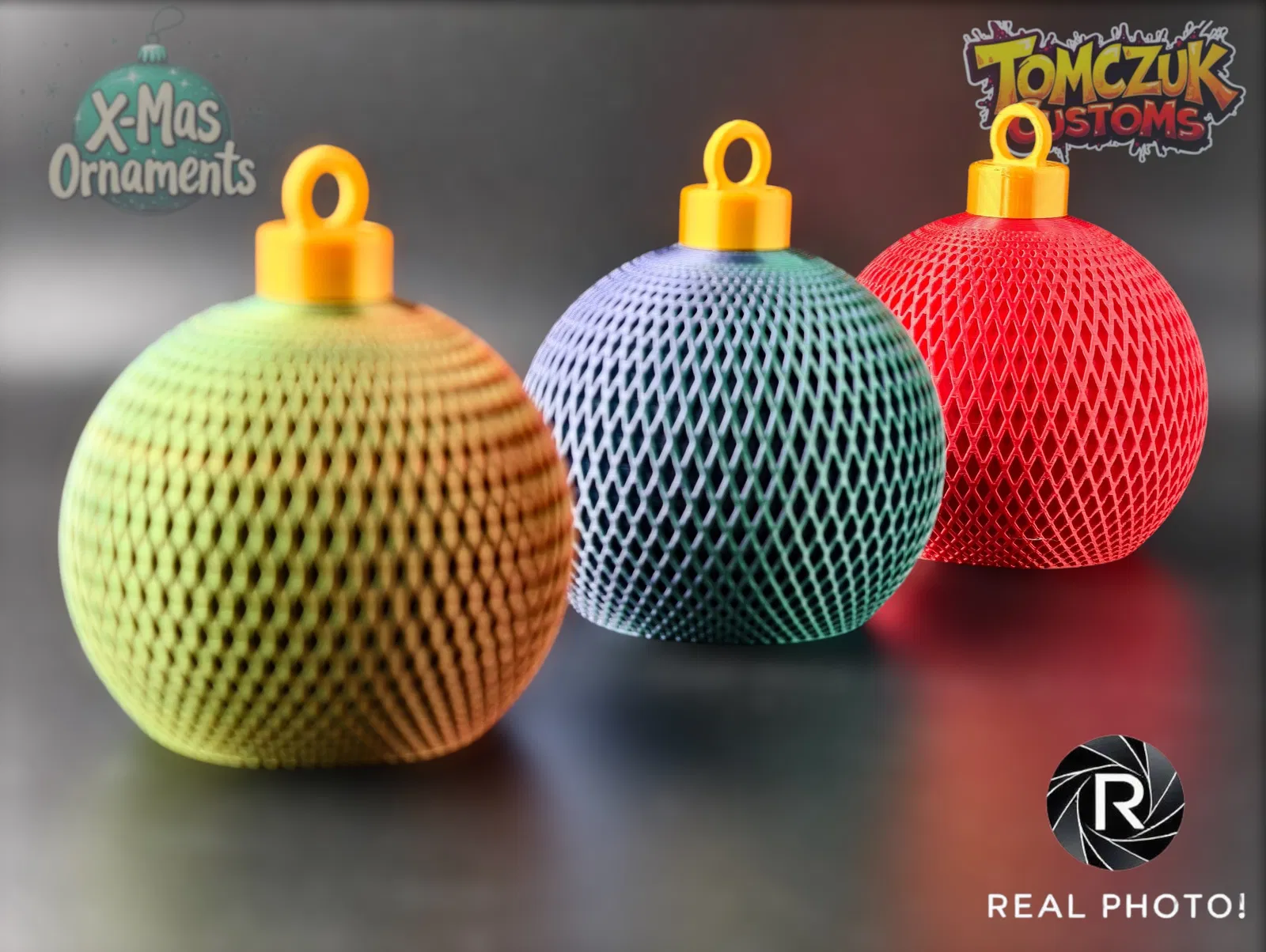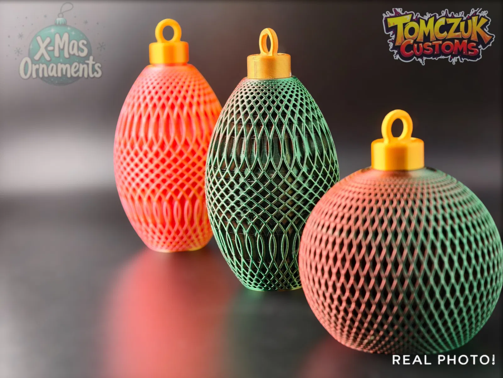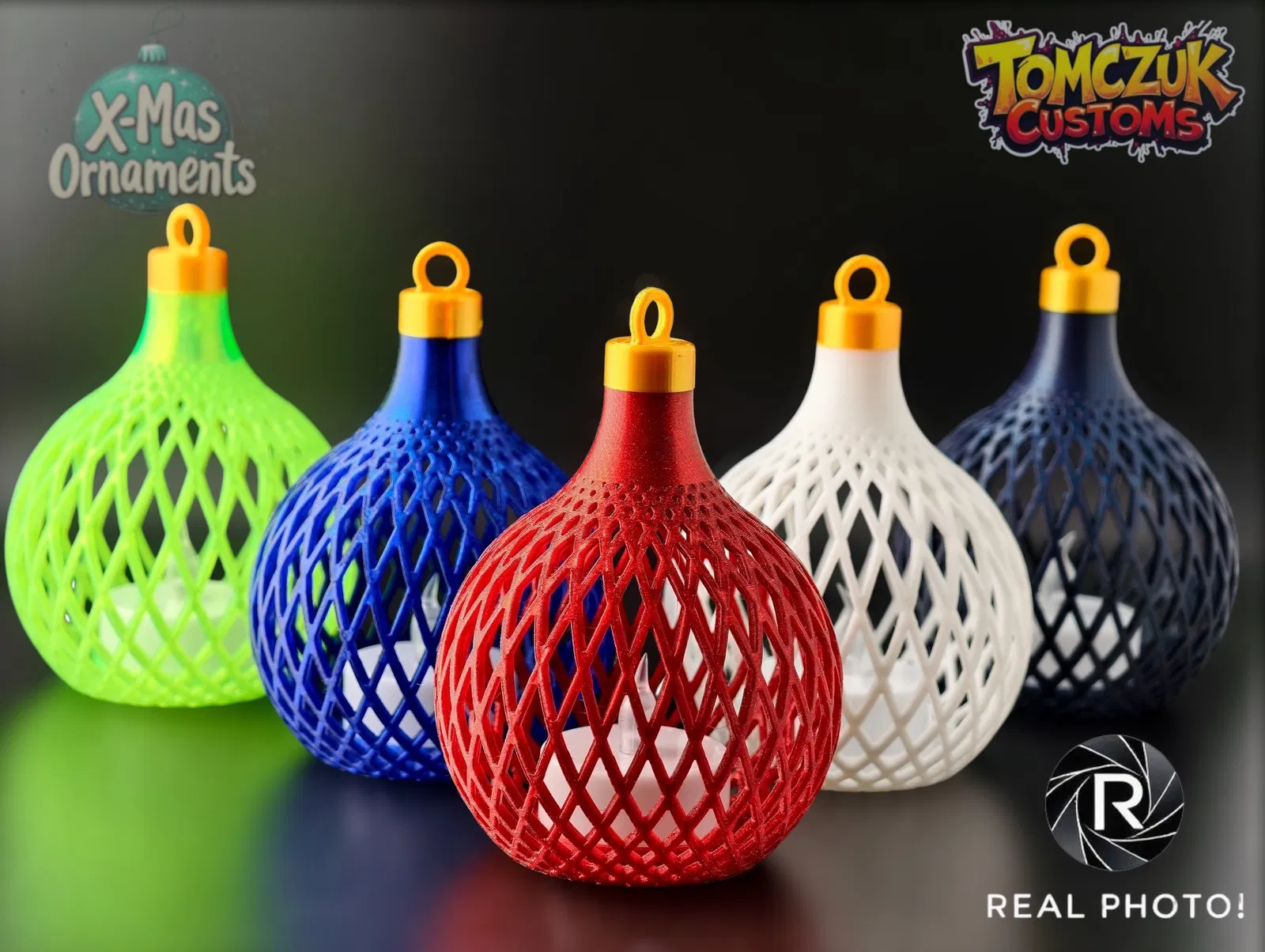 Set gồm 3 quả châu Giáng Sinh cổ điển, chắc chắn, có một mẫu đặc biệt dùng để đặt đèn trà LED bên trong, tạo hiệu ứng lung linh ấm áp. Tuyệt vời cho cây thông Noel, in dễ dàng với PLA/PETG kim sa hoặc lấp lánh.