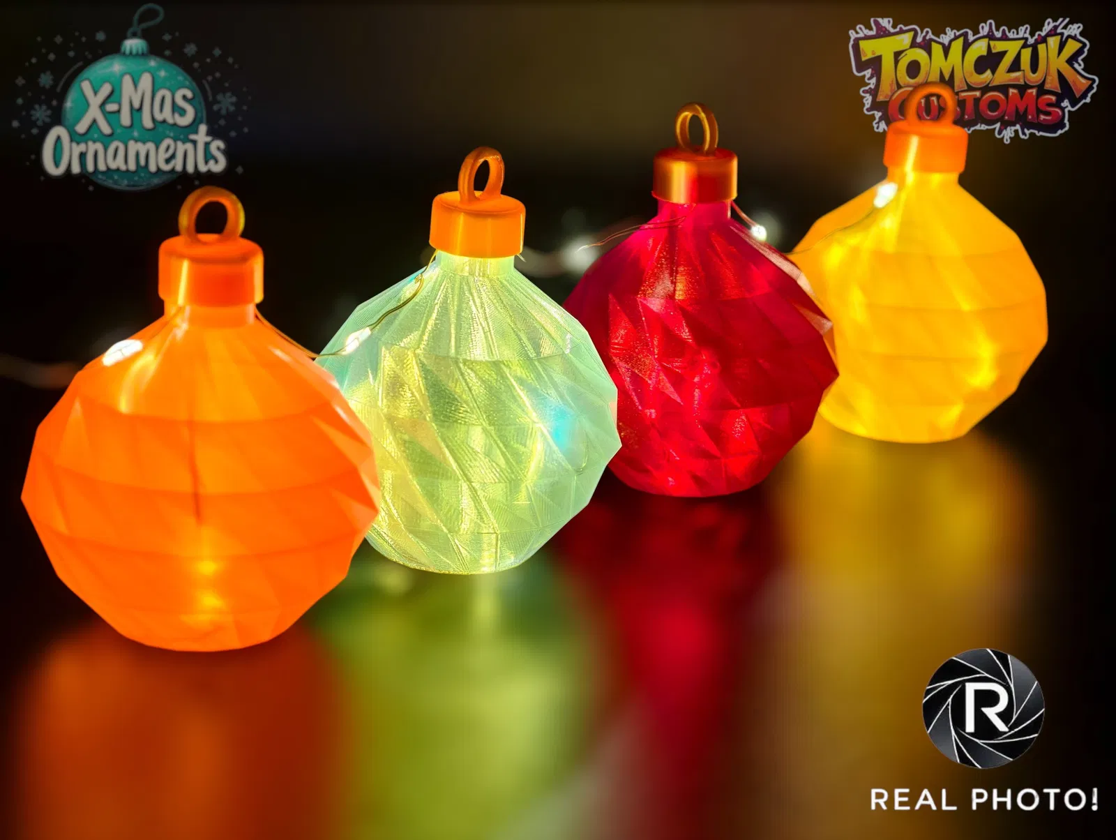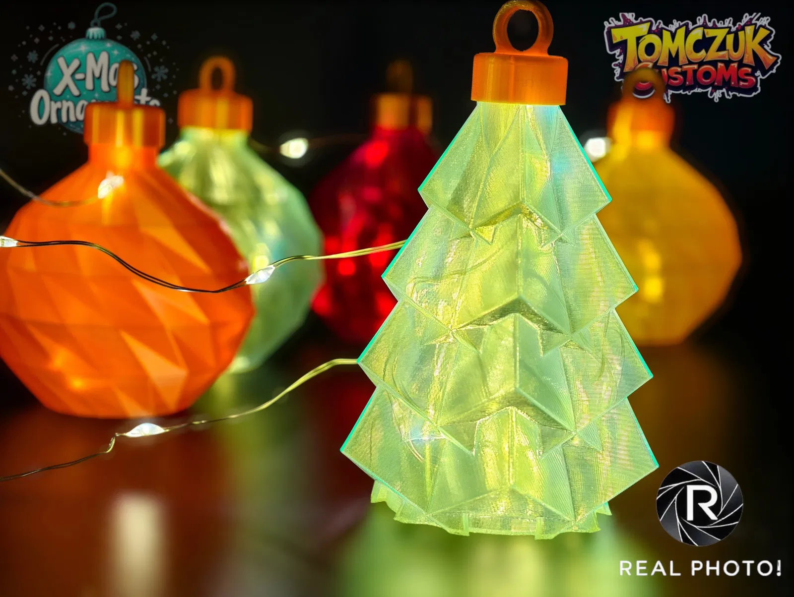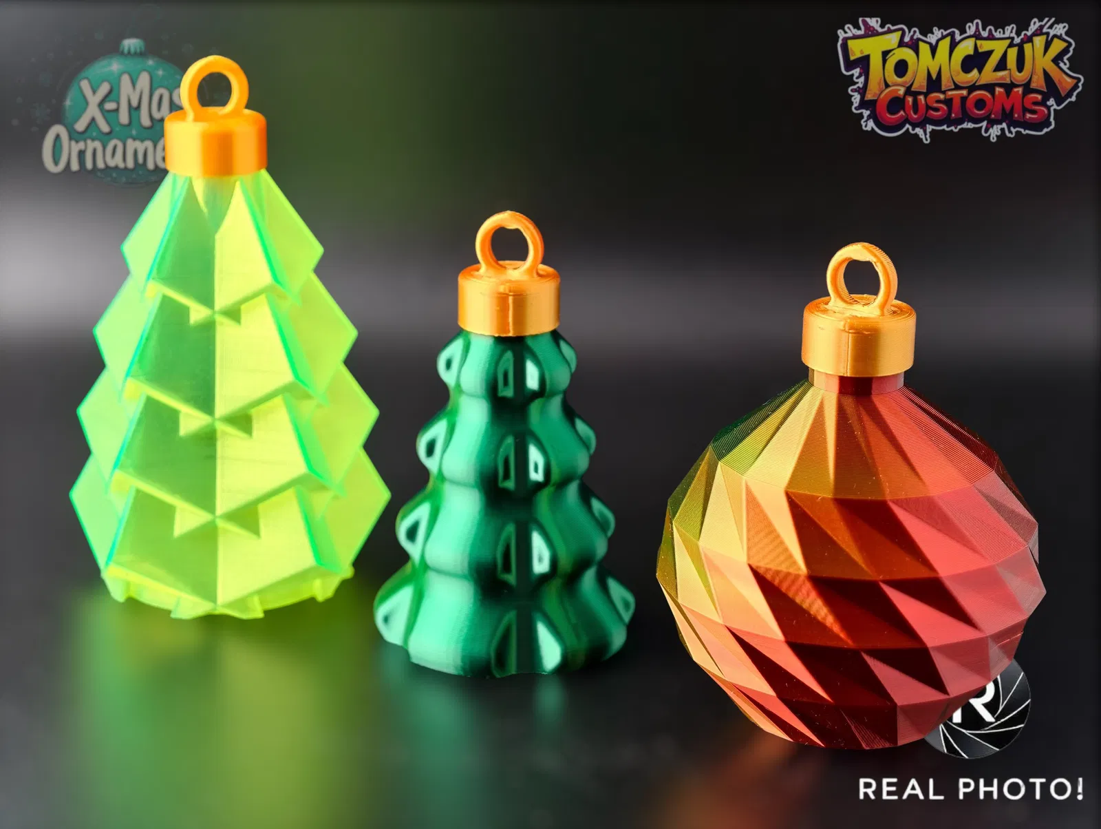Bộ gồm ba món đồ trang trí Giáng sinh siêu nhẹ, được thiết kế để in nhanh bằng chế độ vase. Hoàn hảo cho các loại sợi trong mờ hoặc neon và để tạo ra các chuỗi đèn LED dài lấp lánh trên cây thông của bạn.
