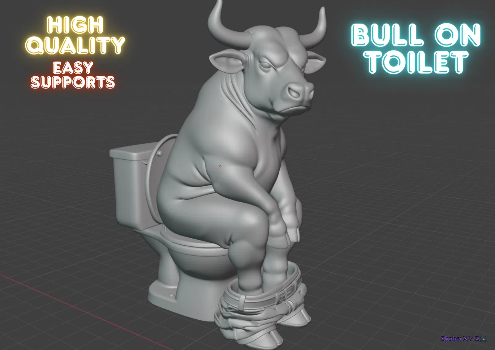 Mô hình Bò đang ngồi trên bồn cầu, một sản phẩm độc đáo và hài hước. Phần chân chống được thiết kế để dễ dàng tháo lắp, giúp quá trình in ấn và hoàn thiện trở nên thuận tiện hơn.