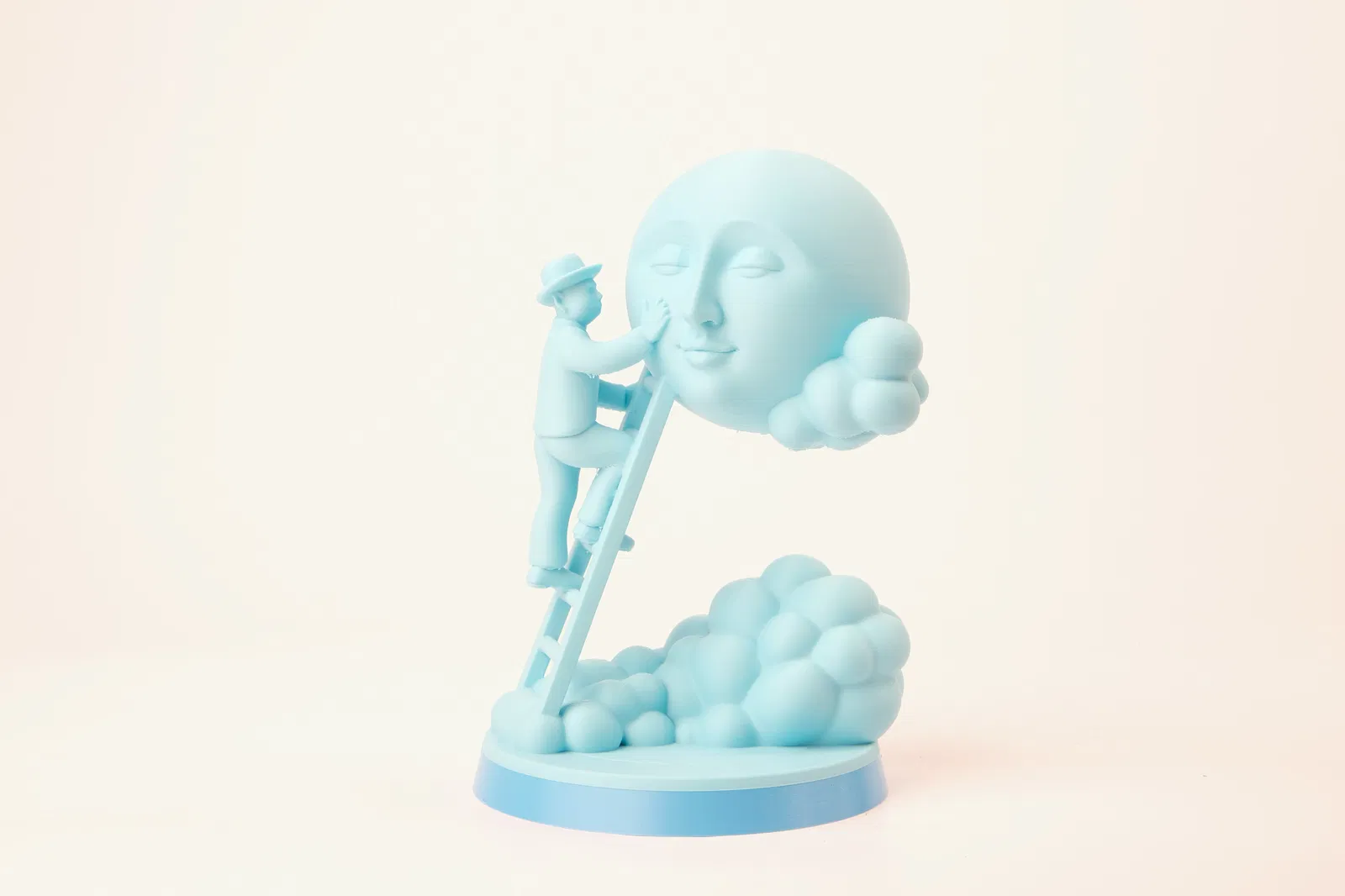 Khám phá Tượng Người Chăm Sóc Mặt Trăng, một tác phẩm nghệ thuật siêu thực độc đáo với hình ảnh người nhỏ bé chạm vào vầng trăng giữa mây. Thiết kế đơn sắc, bo tròn tạo cảm giác mơ màng, là điểm nhấn hoàn hảo cho bàn làm việc hay kệ sách của bạn. Thích hợp cho người yêu nghệ thuật siêu thực và trang trí mang tính thơ ca.
