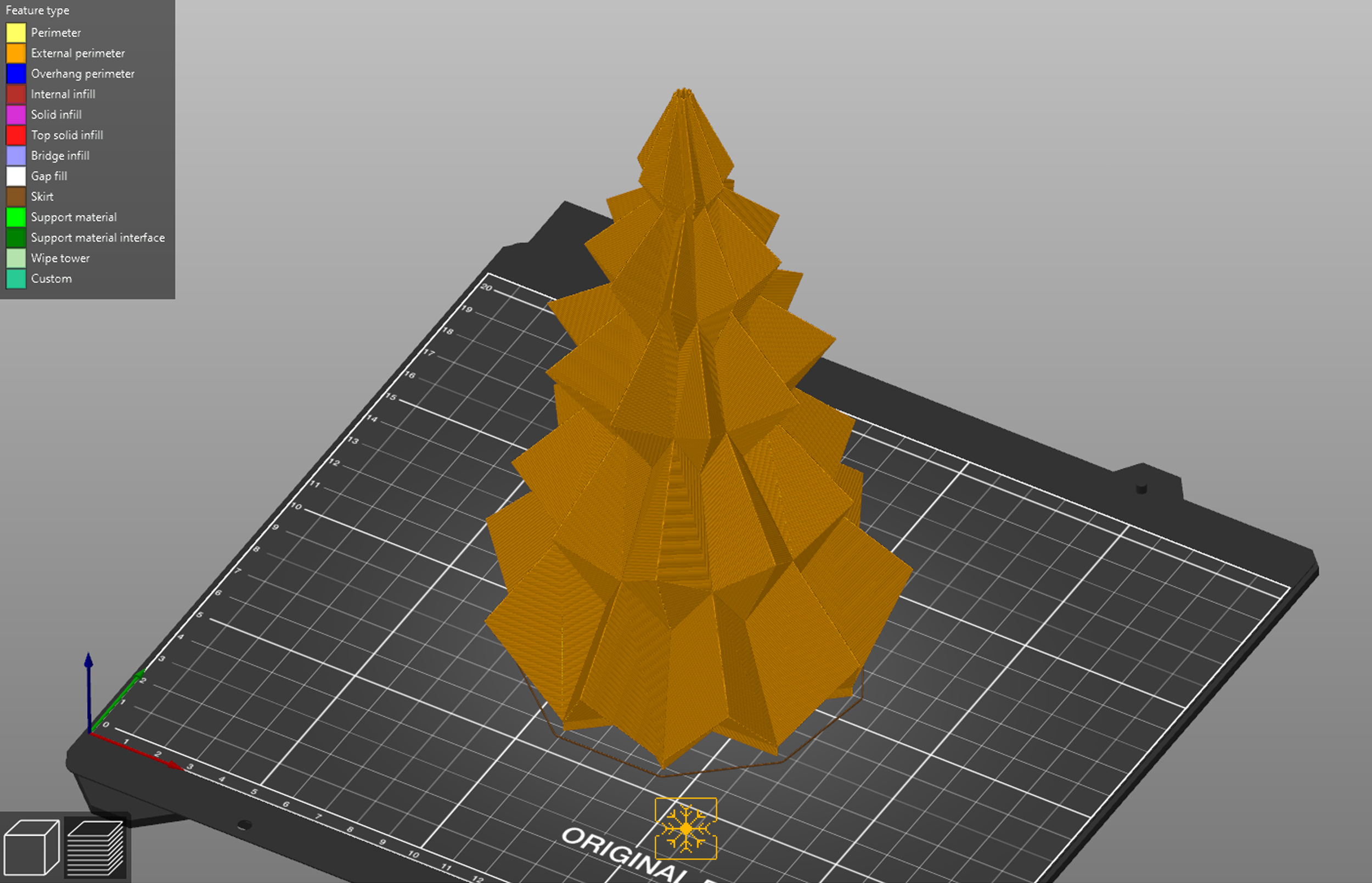 Cây thông được in ở chế độ vase với độ dày lớp 0.20mm và chóp cây in ở chế độ thường với độ dày lớp 0.15mm.