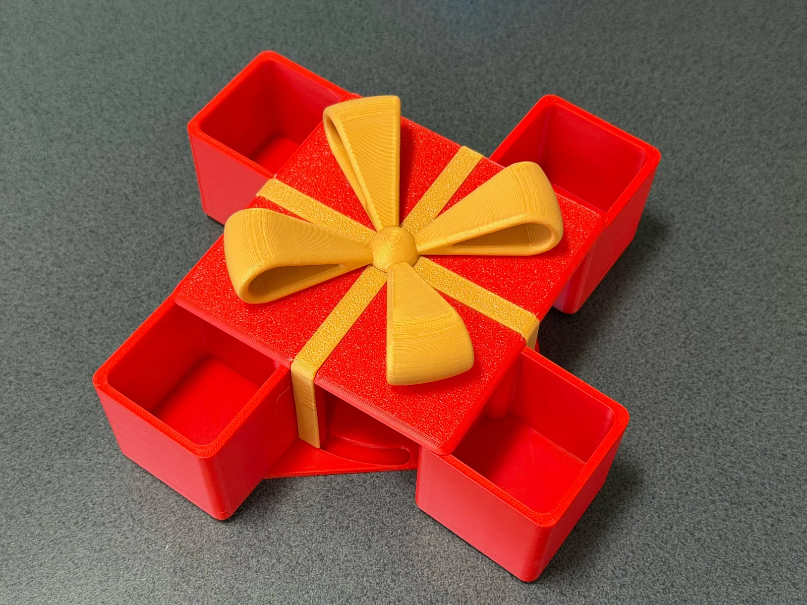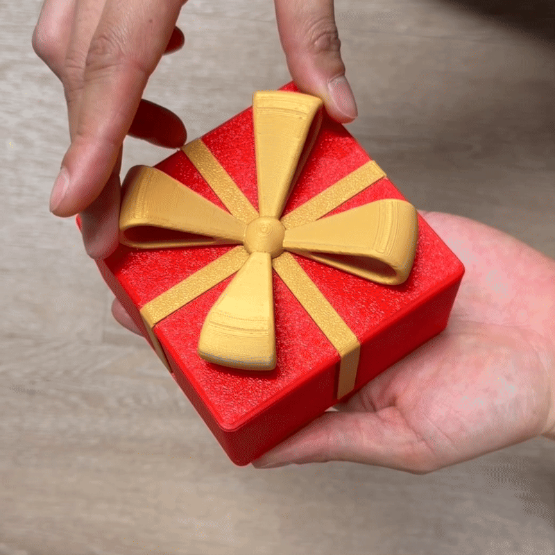 Chiếc hộp quà Giáng sinh cơ khí này mở ra theo cách rất bất ngờ, không phải bằng cách nhấc nắp mà bằng một chuyển động xoay độc đáo. Nó hoạt động tốt để lưu trữ vật nhỏ, chỉ cần in và lắp ráp đơn giản.