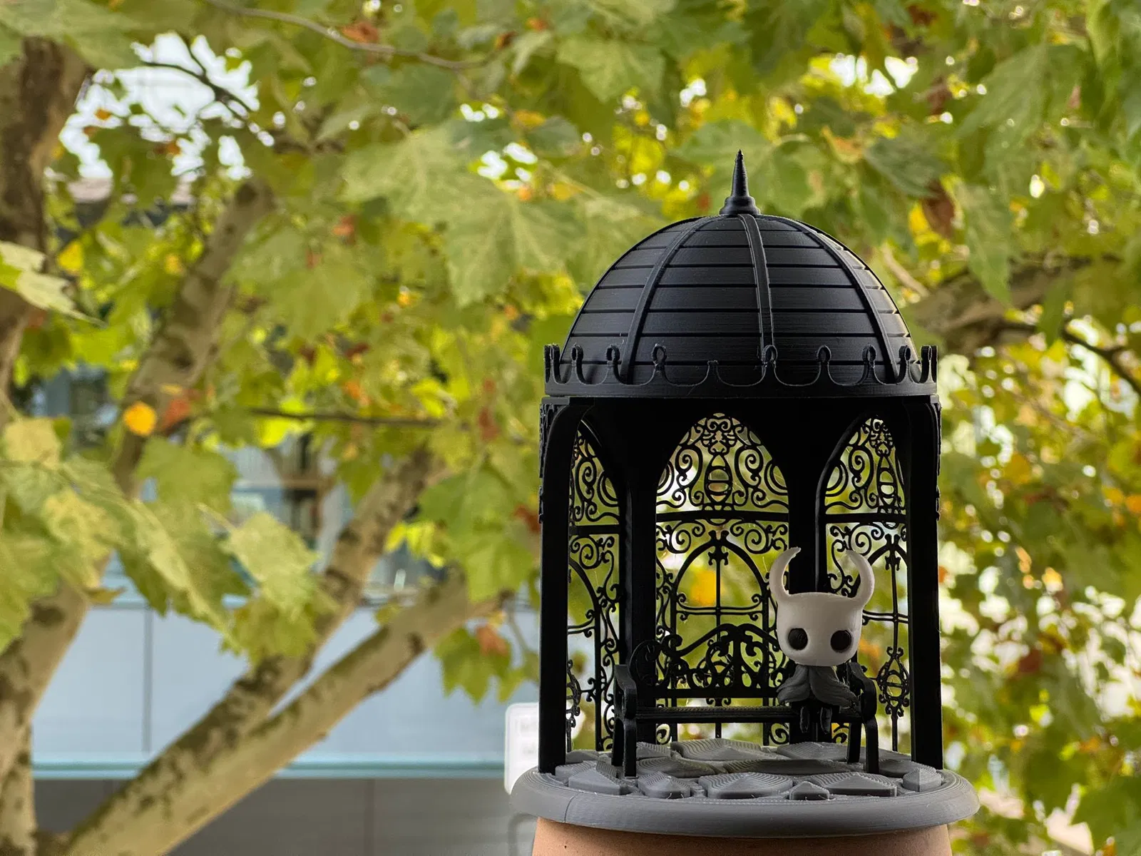 Mang một mảnh Hollow Knight vào thế giới thực với mô hình diorama tuyệt đẹp này lấy cảm hứng từ chiếc ghế đá trong Vườn Nữ Hoàng. Cảnh tượng có một cấu trúc đình nghỉ lộng lẫy với các họa tiết gothic tinh xảo và một chiếc ghế nhỏ nơi Hiệp Sĩ có thể nghỉ ngơi sau khi khám phá Hallownest.