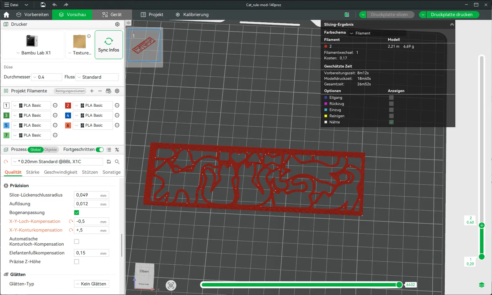 !! Trong Bambu-Studio: đặt hole-Comp. thành -0,5mmKontur-Comp. thành +0,5mm !!