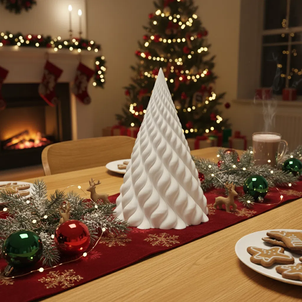 Trang Trí Độc Lập (Chế độ Bình hoặc In Tiêu chuẩn): In cây đèn này bằng sợi filament yêu thích của bạn (như màu trắng, xanh lá cây cổ điển, hoặc thậm chí là sợi lụa) và sử dụng trực tiếp như một tác phẩm điêu khắc trang trí tối giản, sành điệu cho ngày lễ. Nó trông tuyệt vời khi được in ở các kích cỡ khác nhau để tạo thành một "khu rừng" nhỏ. Để có một vật trang trí nhẹ nhàng, thanh thoát hơn, hãy in ở Chế độ Bình. Nếu bạn cần độ bền cao hơn hoặc cảm giác chắc chắn, việc in tiêu chuẩn (có ruột) cũng là một lựa chọn tuyệt vời.
