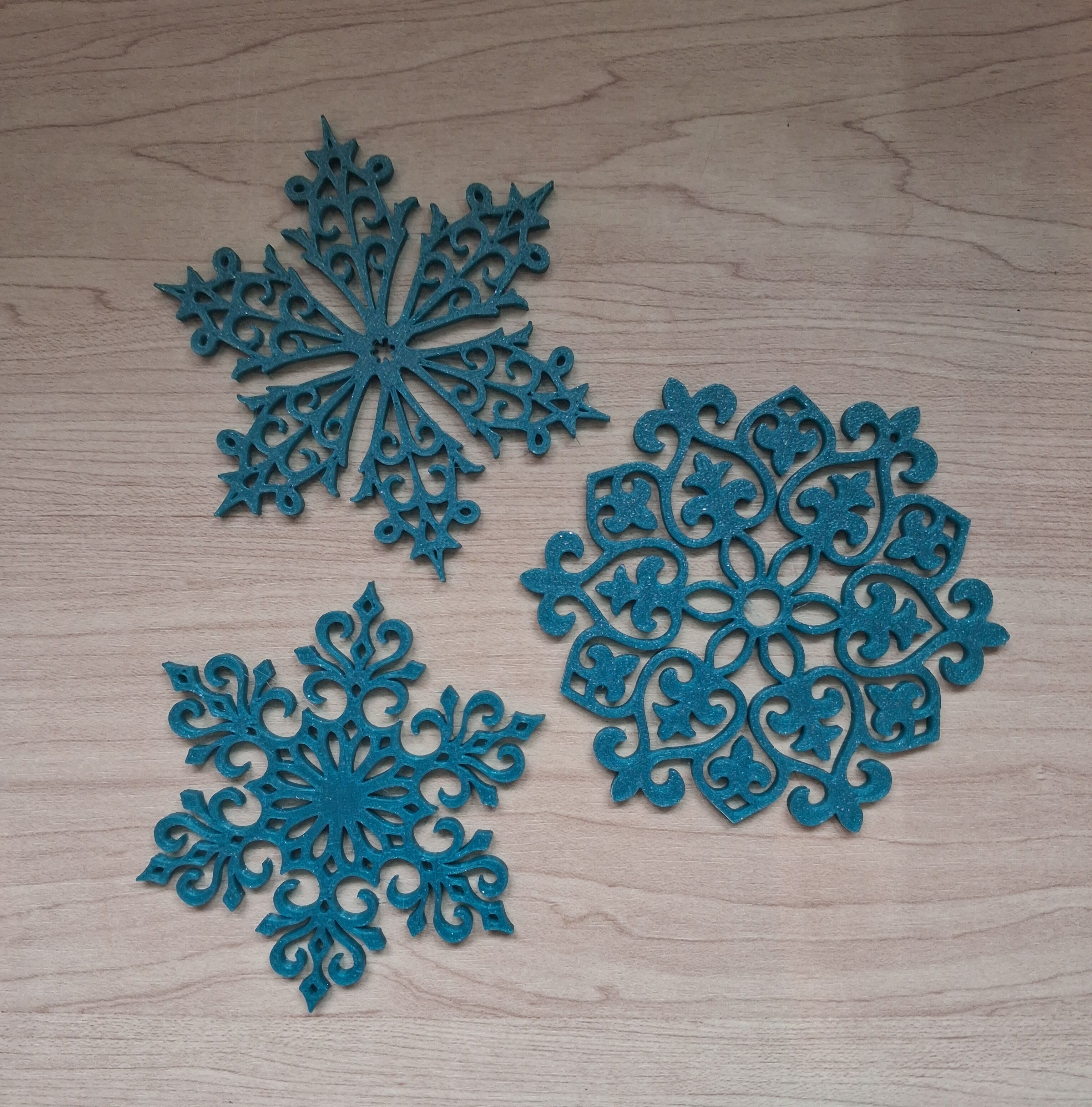 Bộ móc trang trí hình tuyết rơi này có 3 cái, mỗi cái dày 3mm cho chắc chắn. Bạn có thể tùy chỉnh kích thước theo ý muốn, mình thường in cỡ 10x10cm. Nên dùng brim để tránh lỗi in và có thể in bằng PLA hoặc PETG.