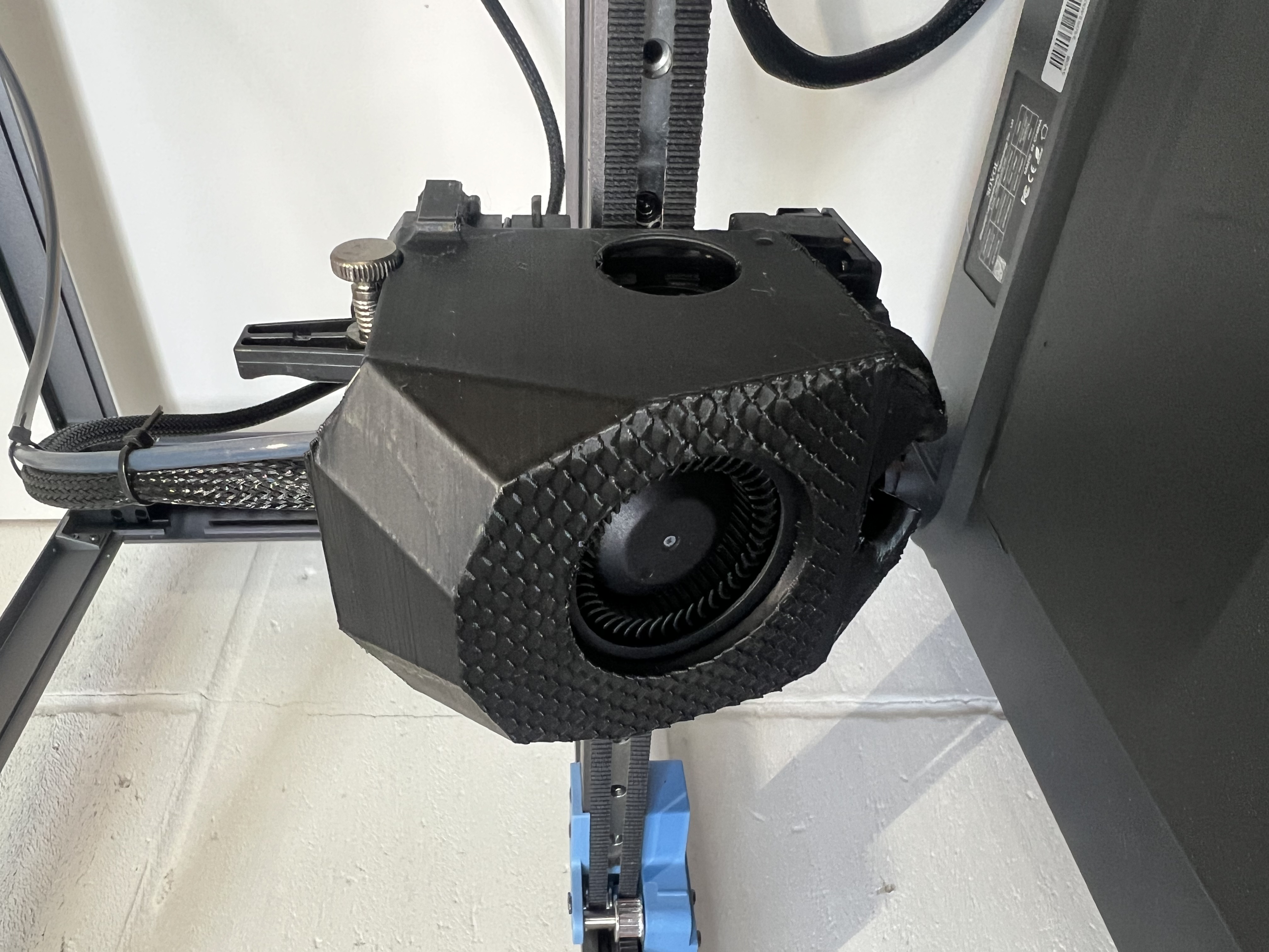 Tôi đã chỉnh sửa lại mẫu gốc, phần thành bên rất mỏng (chỉ dưới 1mm, cơ bản là 2 lớp, mẫu của tôi dày gần 2mm) và một kênh dẫn khí lạ (tôi không biết tại sao tôi không thích đường dẫn khí đó, dường như nhà thiết kế gốc đã cố gắng chia luồng khí đều, có thể tôi sẽ kết hợp một thiết kế tương tự trong phiên bản tiếp theo của mình) và một vài chi tiết không cần thiết làm cho việc in ấn khó khăn hơn (các khe/rãnh/lỗ ở hai bên). Phiên bản của tôi có các cập nhật sau: