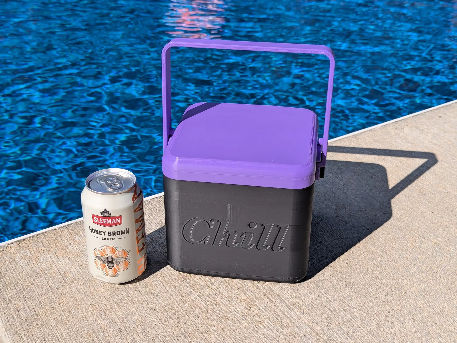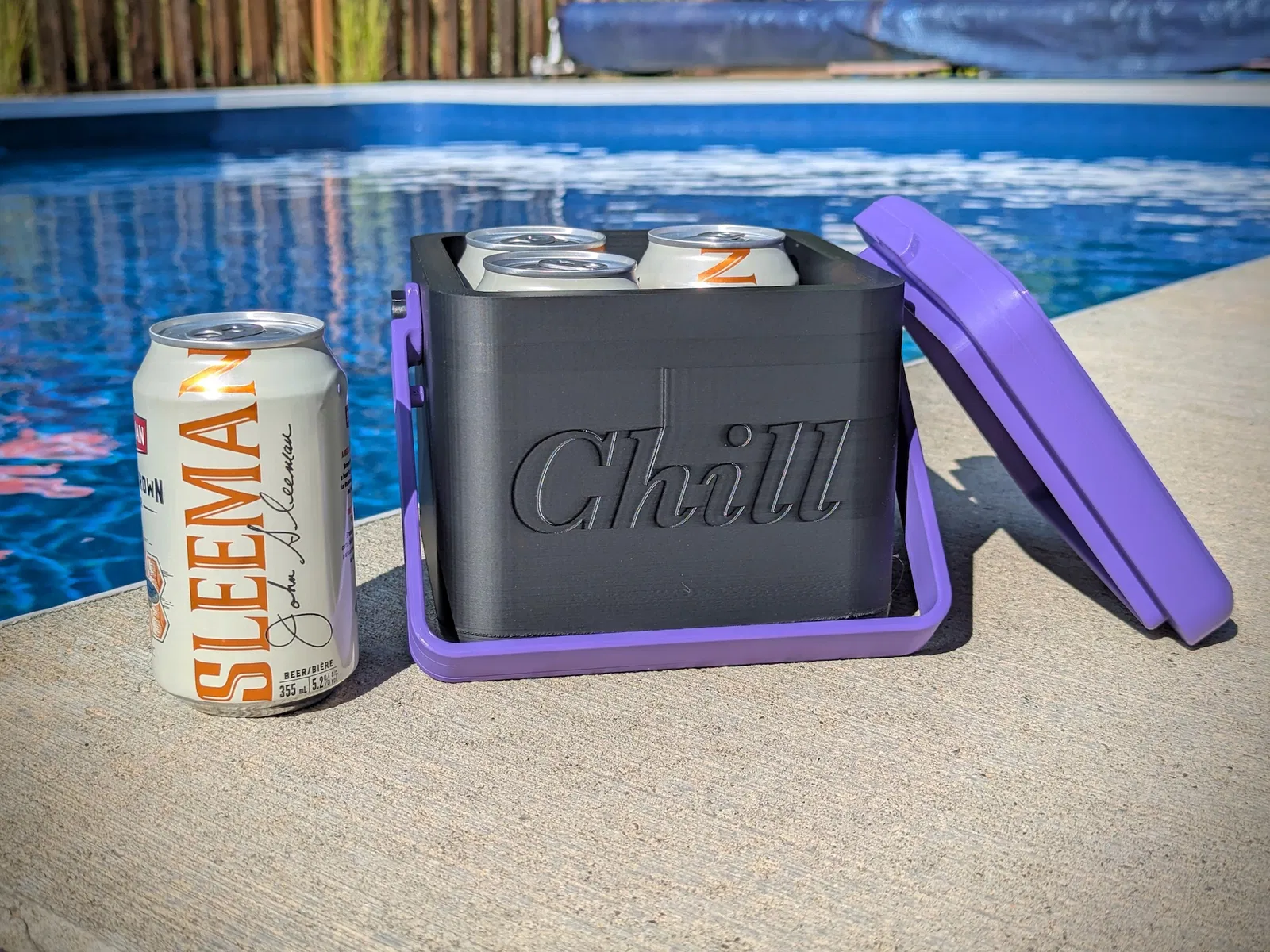 Cái thùng giữ lạnh bia 4 lon này có tay cầm và nắp khóa, giúp giữ bia lạnh cho mùa hè của bạn. Tui đề nghị in bằng màu sáng cho vui mắt. Có nhiều kích cỡ đáy và nắp "notched" tiện lợi, cùng với lời khuyên về infill và ốc vít để lắp ráp dễ dàng. Chúc bạn mùa hè vui vẻ!