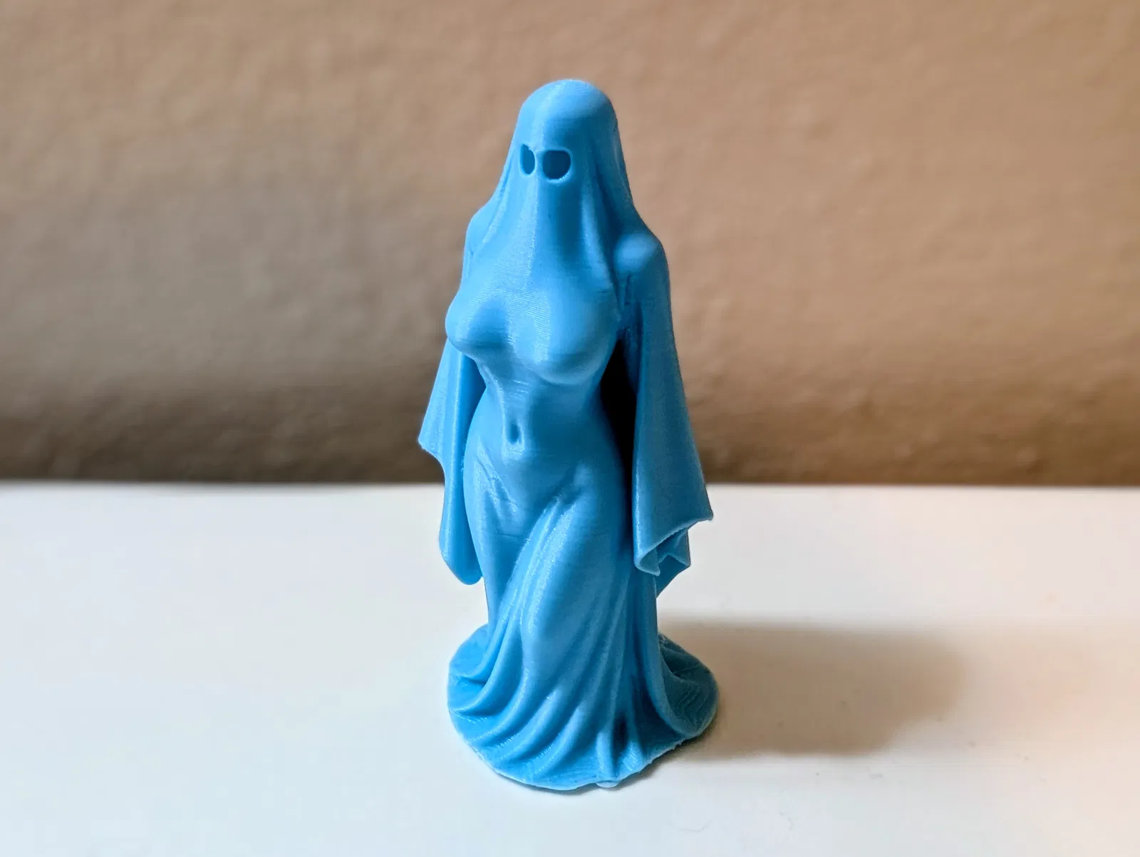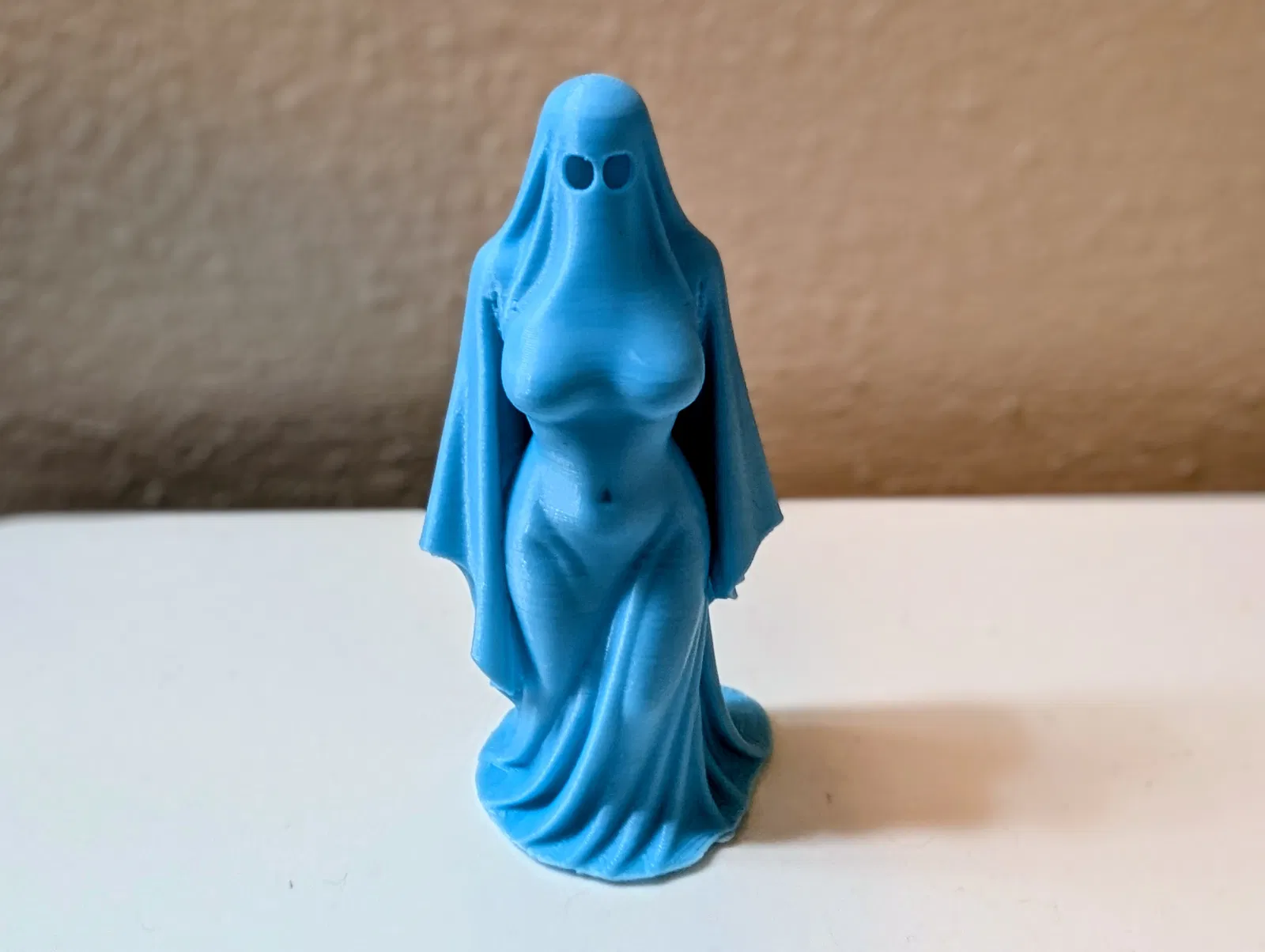 Mình thiết kế quý cô ma quái này để toát lên vẻ thanh lịch ẩn chứa đầy bí ẩn. Chiếc mạng che và bóng hình ma quái uyển chuyển của cô ấy tạo nên một hình tượng ấn tượng, vừa ma mị vừa đẹp đẽ. In bằng PLA phát quang, cô ấy trở nên sống động dưới ánh sáng yếu, rất hợp để trang trí Halloween, bộ sưu tập gothic, hoặc bất kỳ ai yêu thích khía cạnh rùng rợn của nghệ thuật.