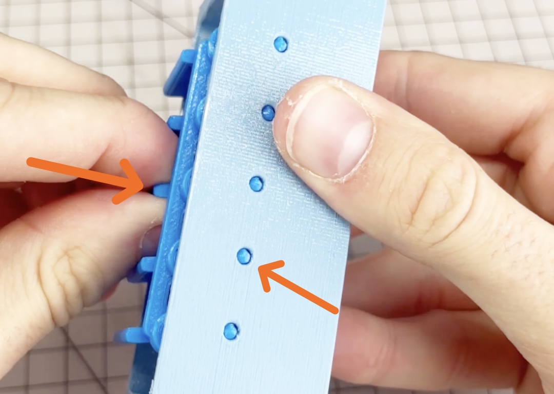 BƯỚC 2: Ấn các vòng tròn ở đầu chốt xuống để cố định.⬇