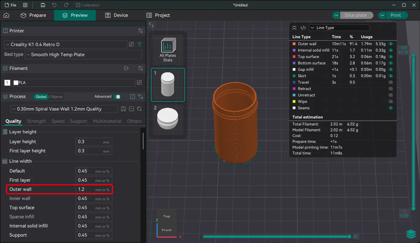 • Chiều cao đế khuyến nghị: BaseHeight = LayerHeight × NumberOfBottomSolidLayers (Đây là chiều cao sau khi slicer của bạn chuyển từ các lớp liền sang chế độ spiral-vase.)