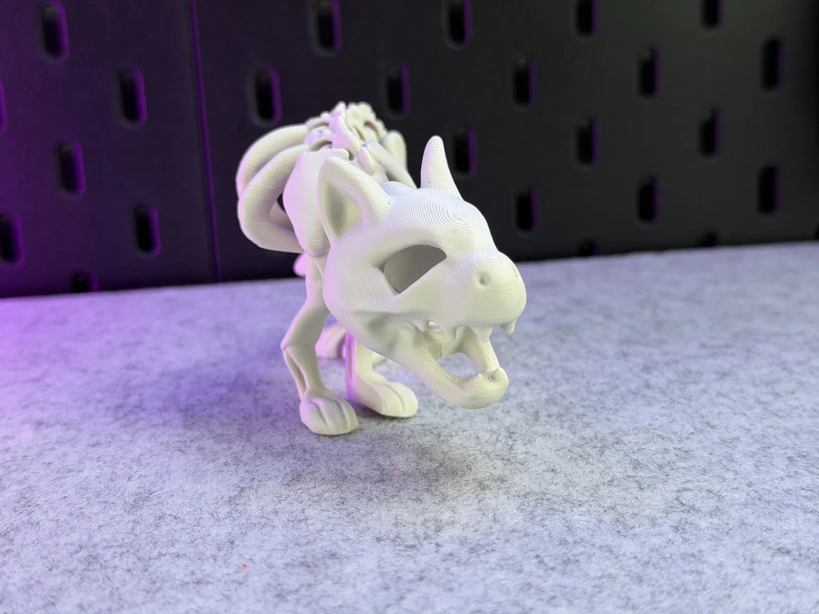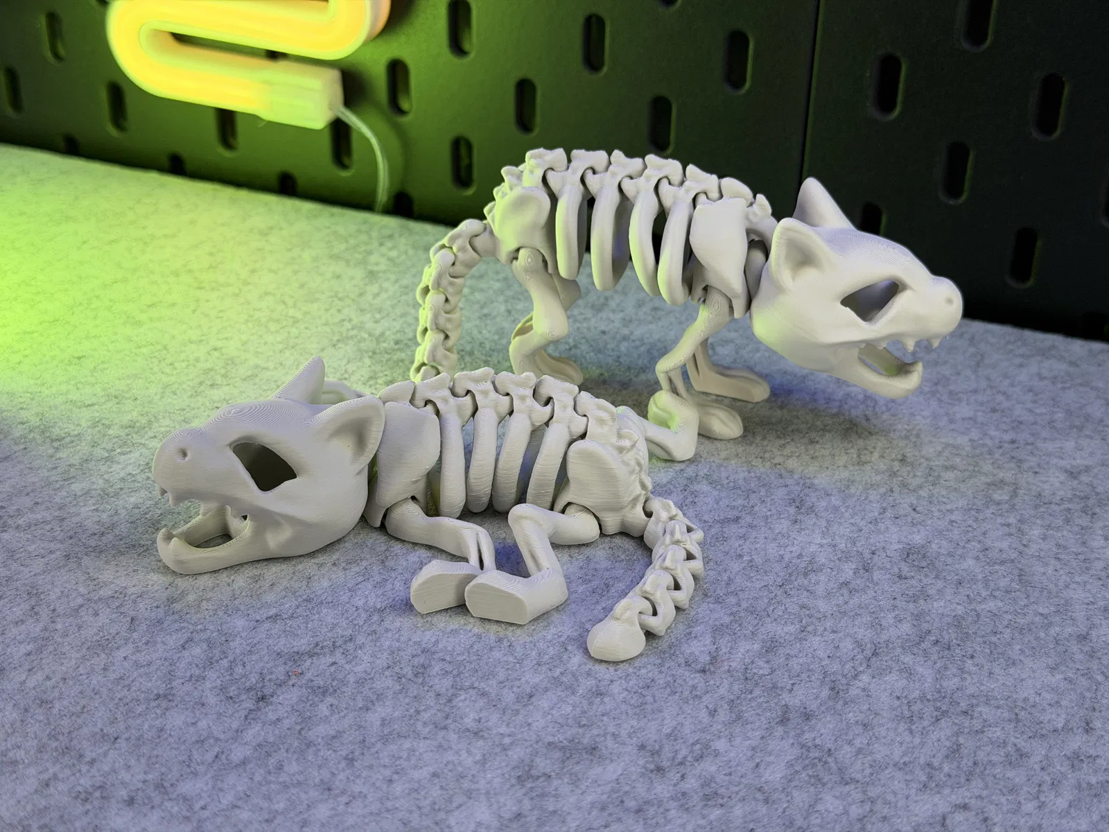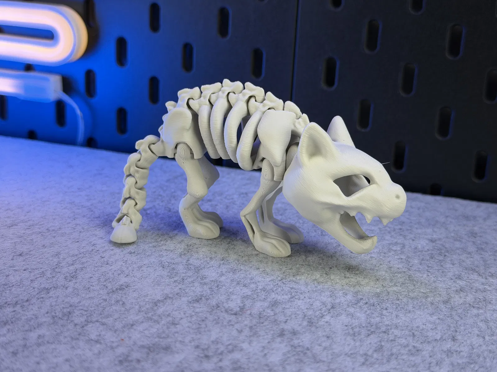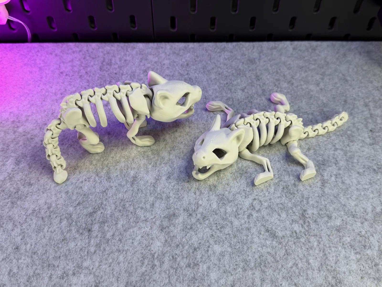 Mô hình Mèo Bộ Xương Khớp Nối, in được một màu. Có thể đứng vững! Hướng dẫn in chi tiết với vật liệu PLA, hỗ trợ cho đầu, cài đặt lớp, vòng thành, độ dày ruột, và lưu ý về khay in. Cảnh báo không scale nhỏ, tránh dùng lực mạnh làm gãy khớp nối và cẩn thận khi gỡ khỏi khay in. Sản phẩm không dành cho trẻ em hoặc thú cưng.