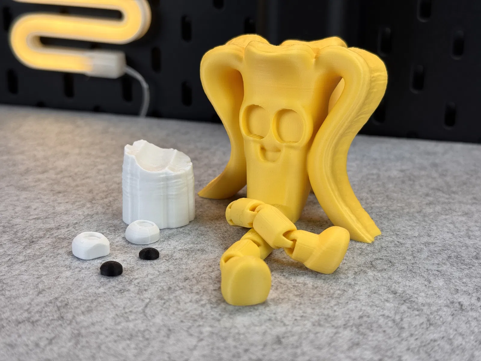 Một quả chuối dễ thương bị cắn nhẹ ở phần vỏ và có đôi chân l wobly. Mô hình này có thể in một hoặc nhiều màu, gồm nhiều bộ phận. Thích hợp cho in đa sắc, in khớp nối và in nhiều bộ phận.
