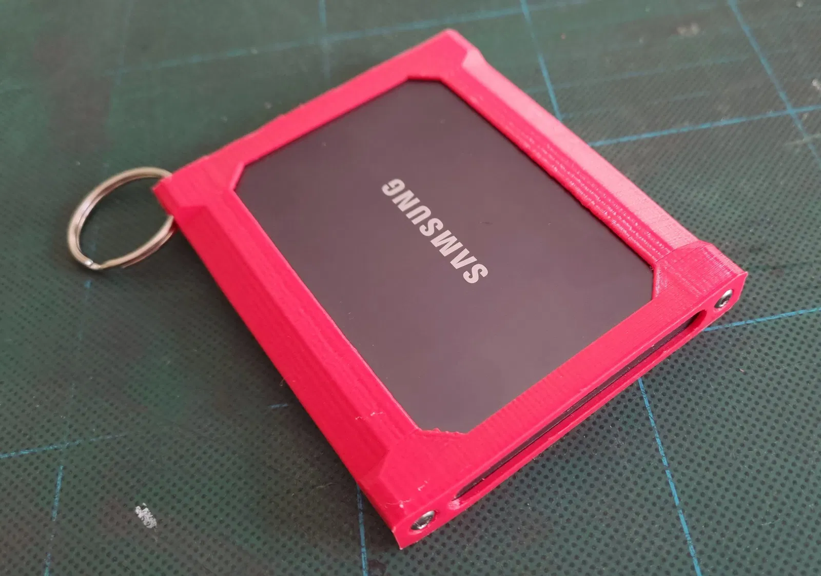 Một vỏ để bảo vệ các cạnh của ổ SSD Samsung T7. Cũng có một chỗ để có thể gắn móc chìa khóa.