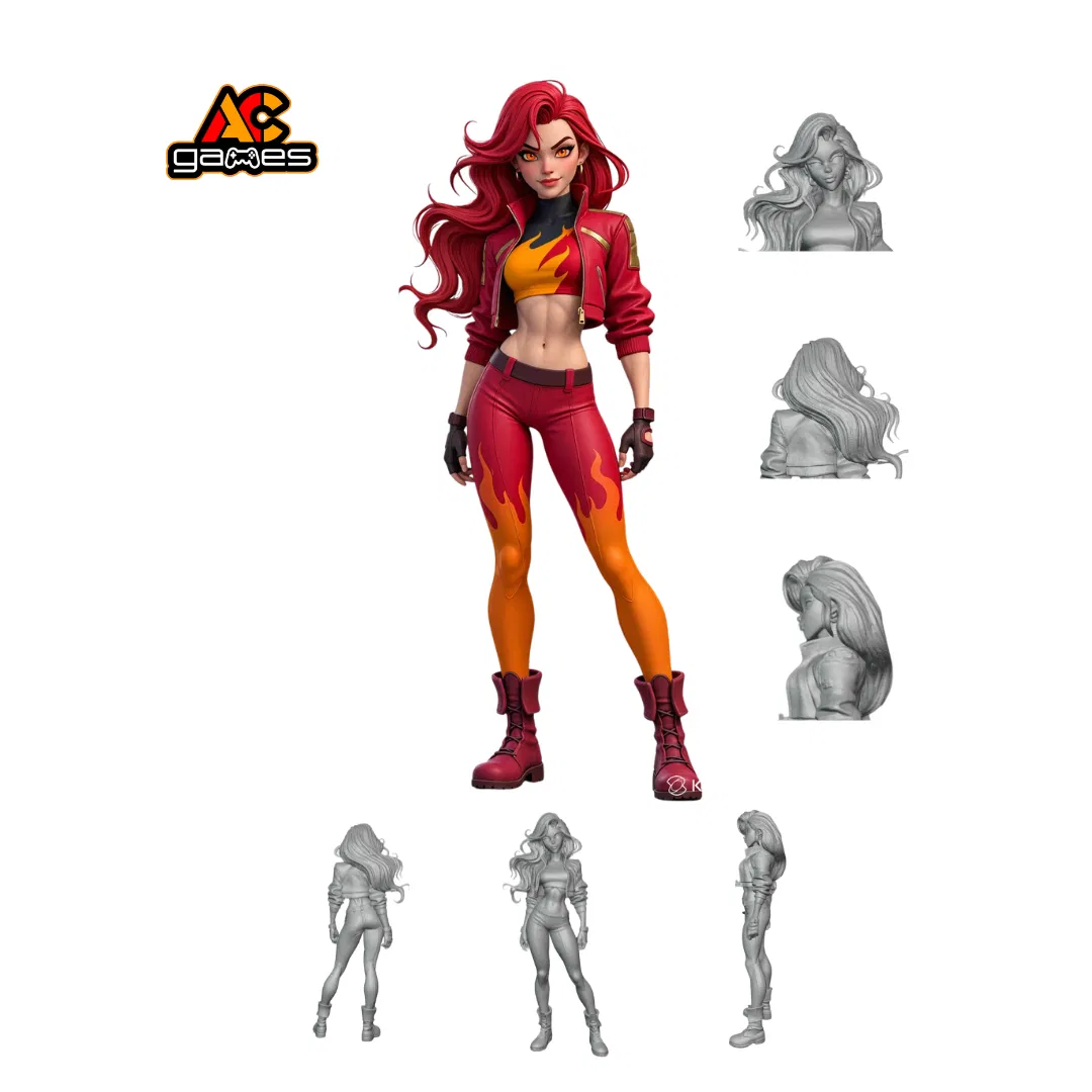 Amara – Mô Hình STL Nữ Phản Diện Lửa Phong Cách Anime Cho In 3D
