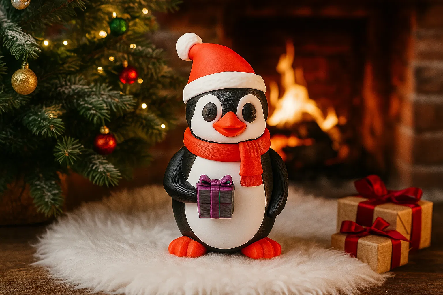 Thêm chút không khí mùa đông vui tươi vào trang trí lễ hội của bạn với Tượng Chim Cánh Cụt Ông Già Noel 3D Siêu Dễ Thương này. Diện chiếc mũ ông già Noel tươi tắn cùng khăn choàng đỏ ấm áp, chú chim cánh cụt vui vẻ này đang cầm một món quà nhỏ, là biểu tượng hoàn hảo cho sự ấm áp và lễ hội mùa này.