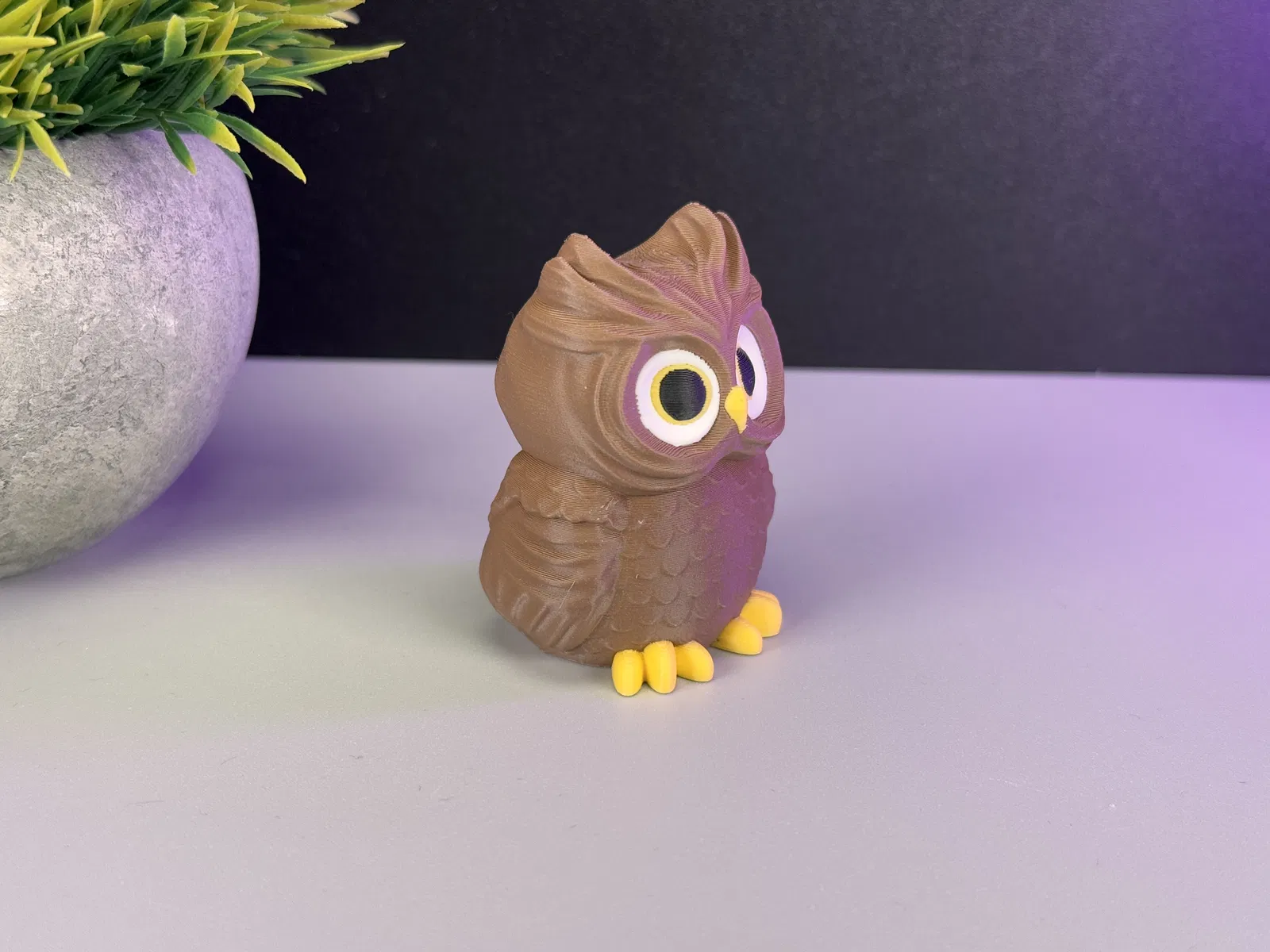 Mô hình Cú mèo, có thể in một màu hoặc nhiều màu. Bản thiết kế này cung cấp các mẹo in chi tiết, bao gồm cài đặt hỗ trợ, chiều cao lớp, và gợi ý màu sắc PLA. Đặc biệt, có file 3mf cho BambuLab với khuyến nghị in nhiều mẫu cùng lúc để tiết kiệm vật liệu.