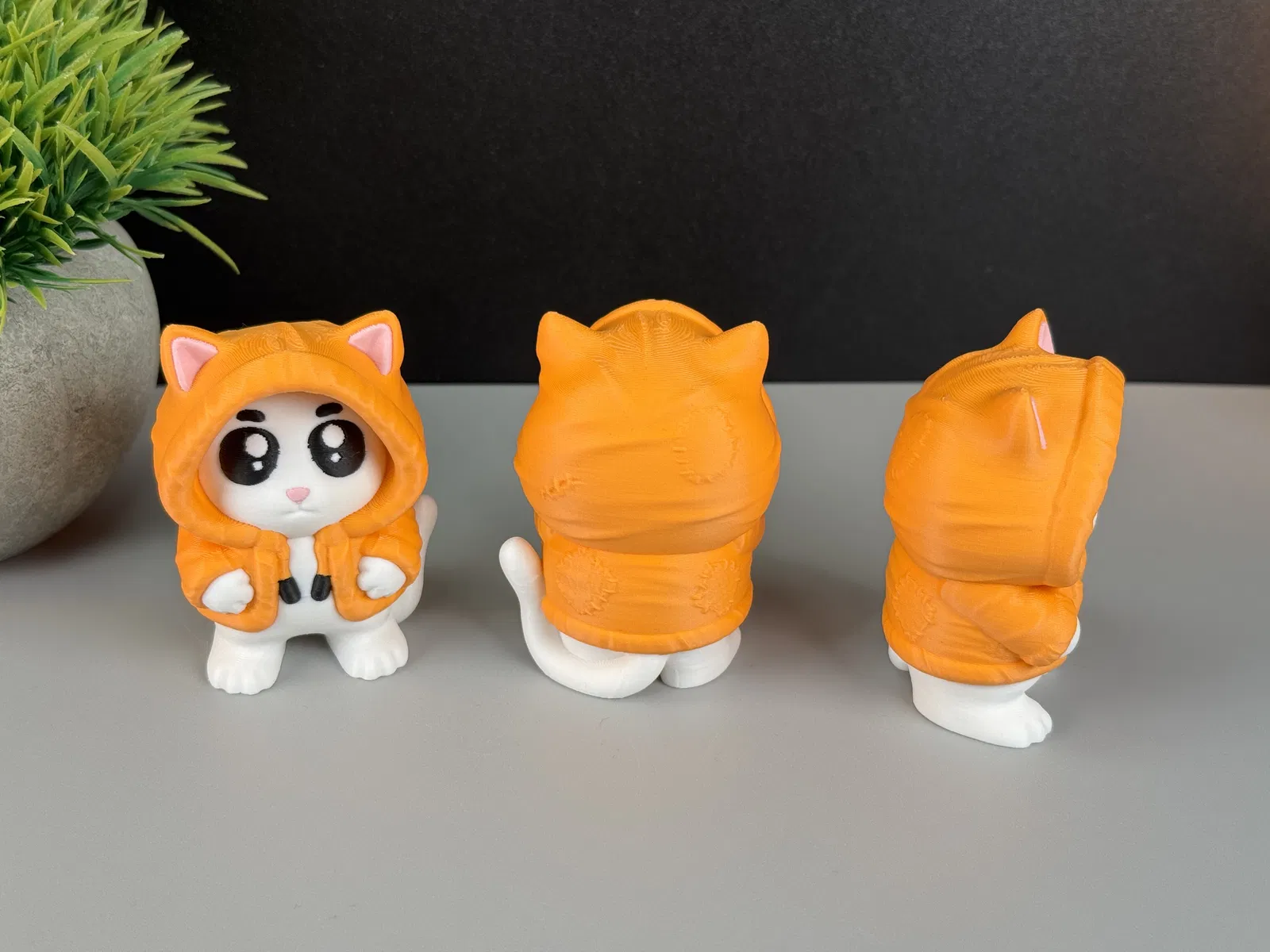 Chú Mèo Mặc Hoodie Dễ Thương (Một hoặc Nhiều Màu). Hướng dẫn in chi tiết bao gồm hỗ trợ, độ cao lớp, vòng tường, infill, vị trí đường nối, và các tùy chọn màu sắc filament PLA. Khuyến cáo in nhiều mẫu cùng lúc để tiết kiệm vật liệu.