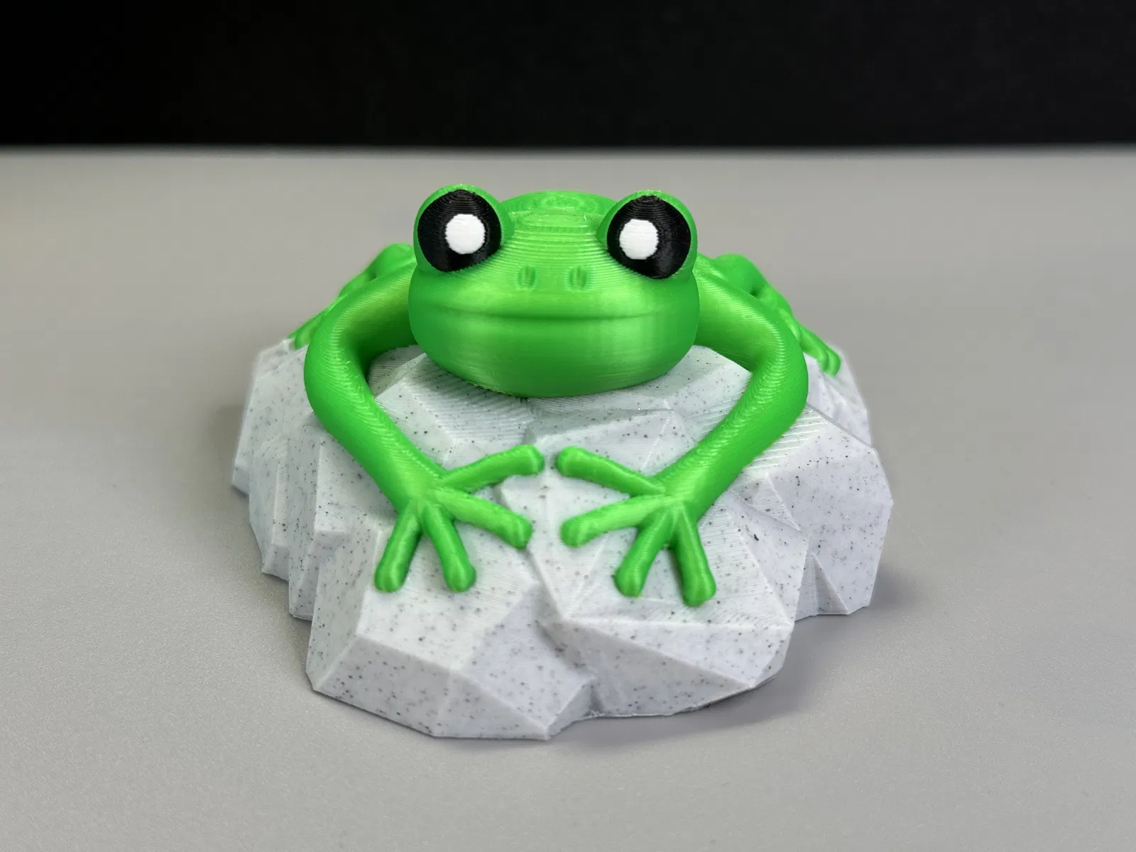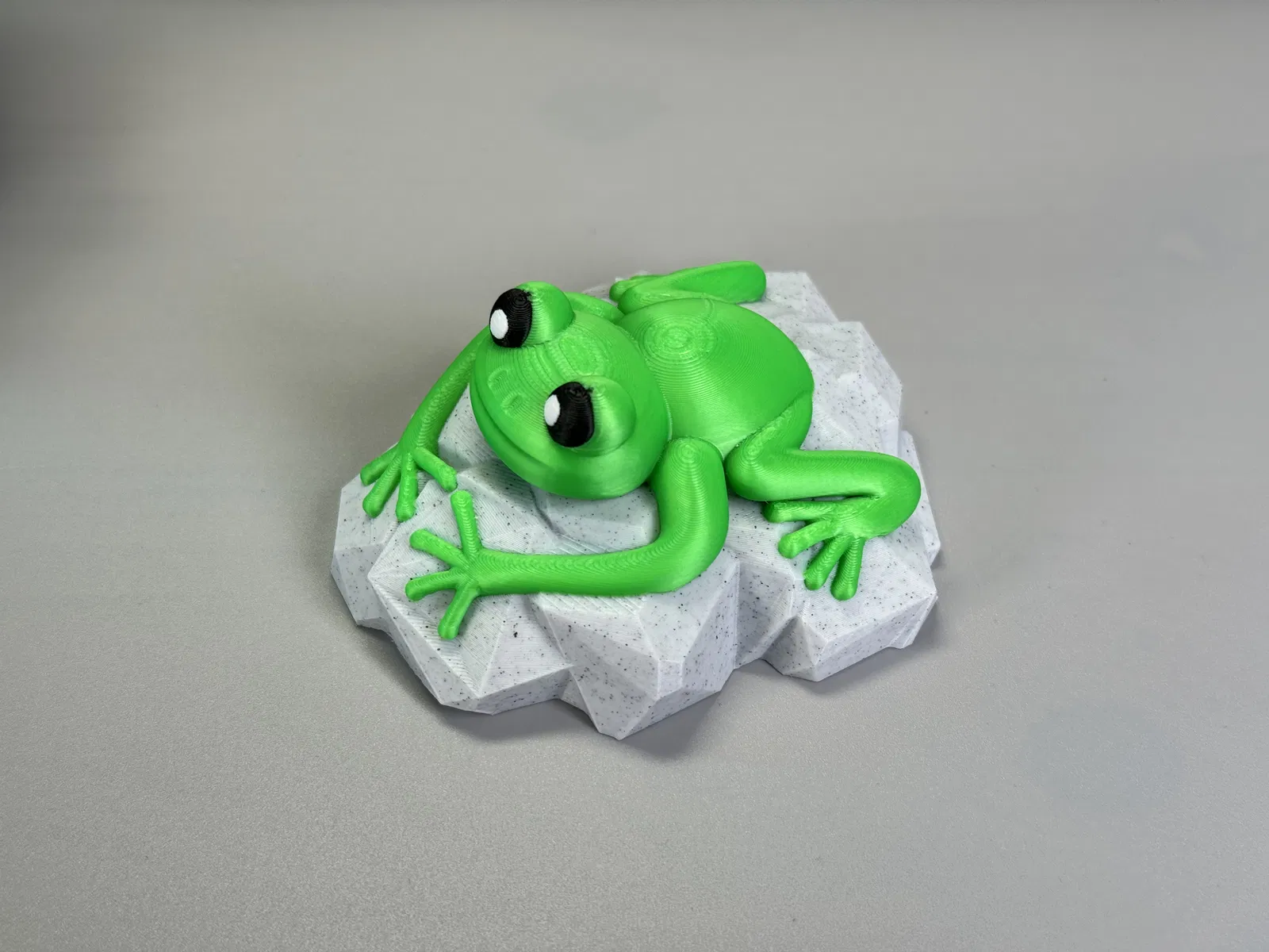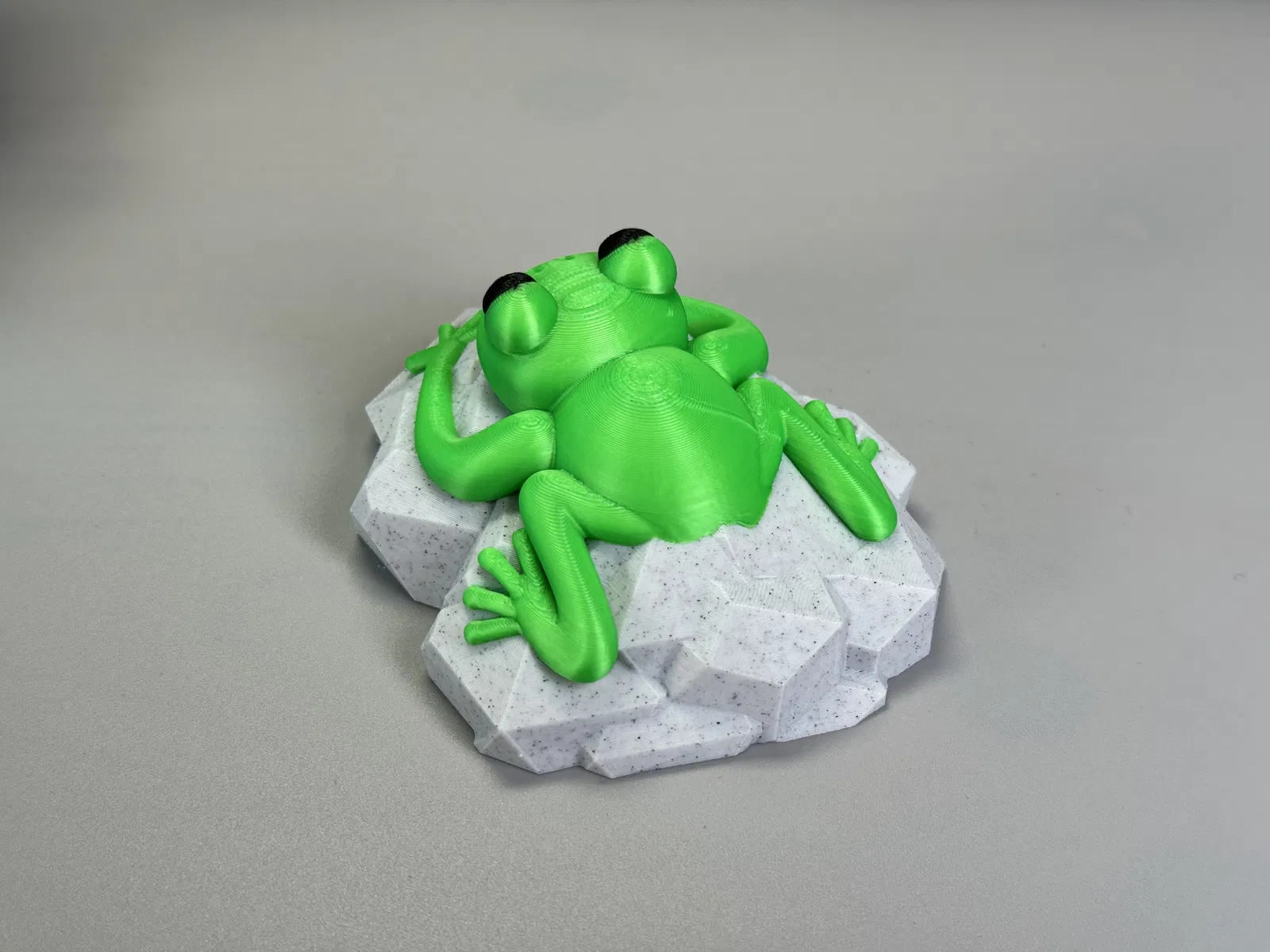 Mô hình con ếch nhỏ xinh đang ngồi trên tảng đá, có thể in đơn sắc hoặc đa sắc. Thích hợp để trang trí hoặc làm quà tặng.