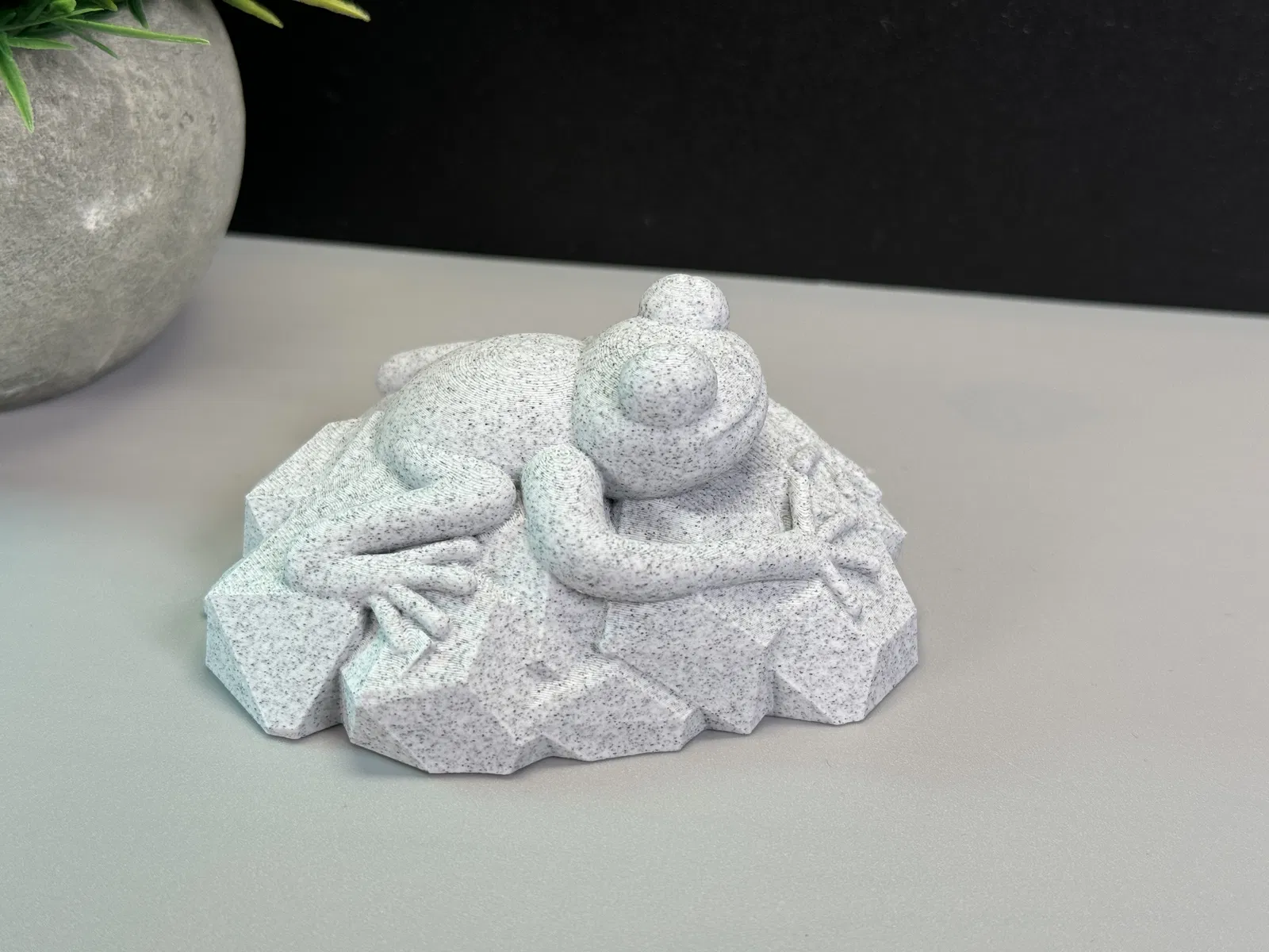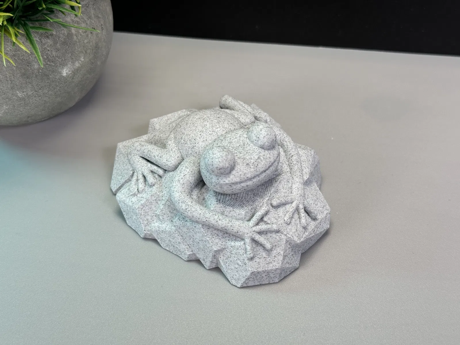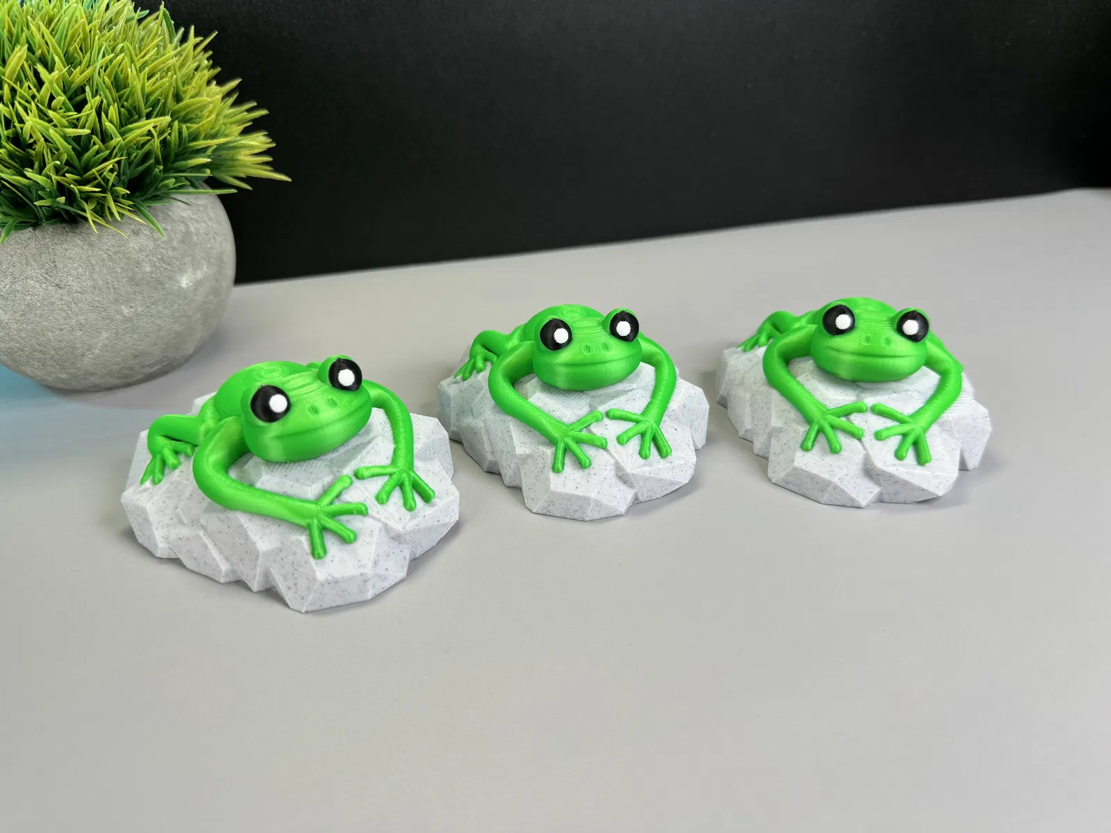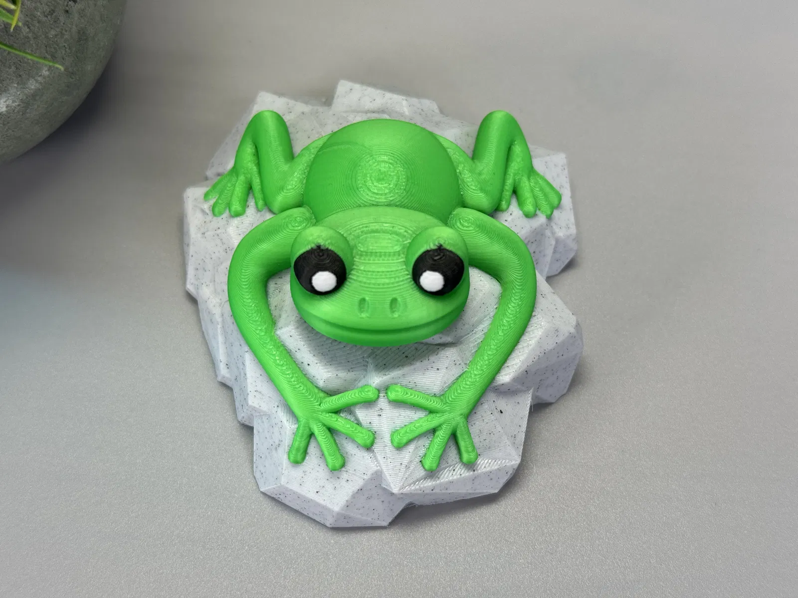 Mô hình con ếch nhỏ xinh đang ngồi trên tảng đá, có thể in đơn sắc hoặc đa sắc. Thích hợp để trang trí hoặc làm quà tặng.