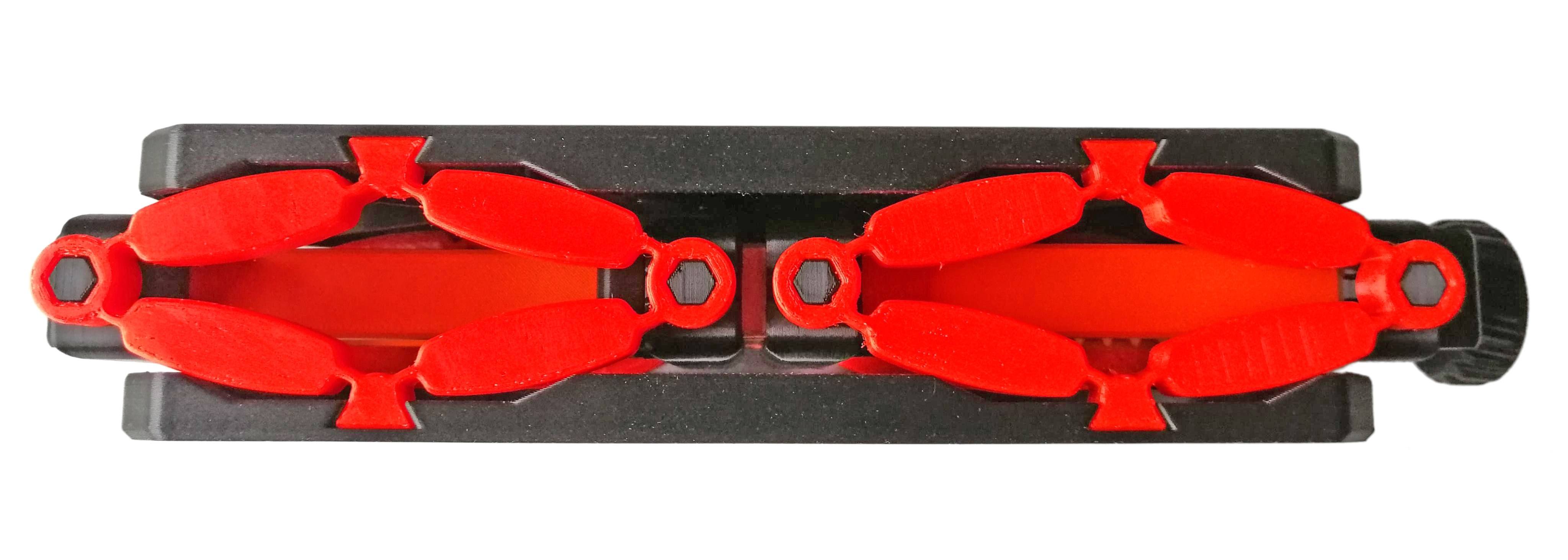 Mặc dù có các bộ phận TPU linh hoạt, nó có tải trọng tối đa tương tự như các thiết kế thông thường và không bị cong vênh dưới tải. Dung sai được tinh chỉnh cho phép điều chỉnh độ cao mượt mà và chính xác. Bề mặt trên có các lỗ lắp M4 được sắp xếp theo hình vuông với các cạnh 20, 40 và 60mm để gắn thiết bị.