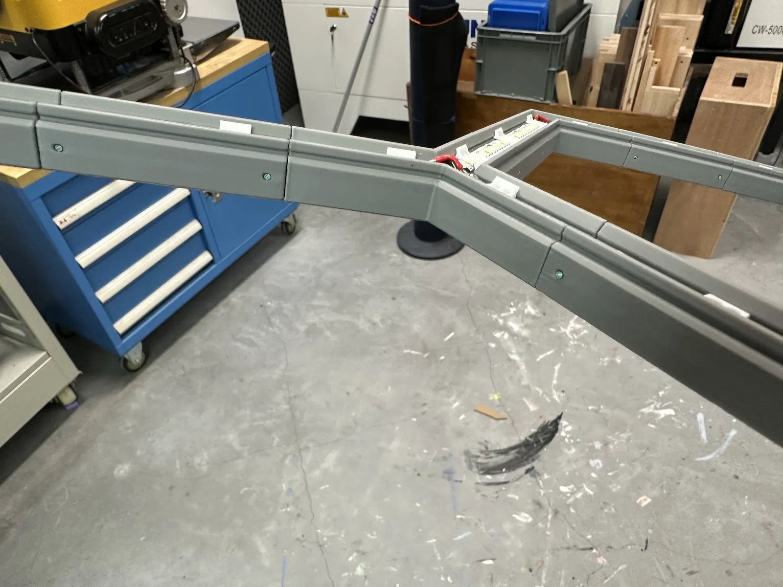 Thiết kế đầu tiên của tôi bao gồm việc dán các bộ phận đỡ vào các bộ phận khung để tăng độ bền, và vẫn cần các bộ phận hỗ trợ bổ sung cùng với nắp đèn để đạt được độ cứng chấp nhận được. Khi thiết kế hệ thống này, tôi muốn tránh bất kỳ bộ phận hỗ trợ bổ sung nào. Các bộ phận khung khá dày, nhưng chúng rất chắc chắn. Khi xây dựng một đèn có kích thước tương đương, hệ thống mới có độ cứng cao hơn chỉ với các bộ phận khung so với đèn đầu tiên với tất cả các lớp được dán lại với nhau. Nói về keo...