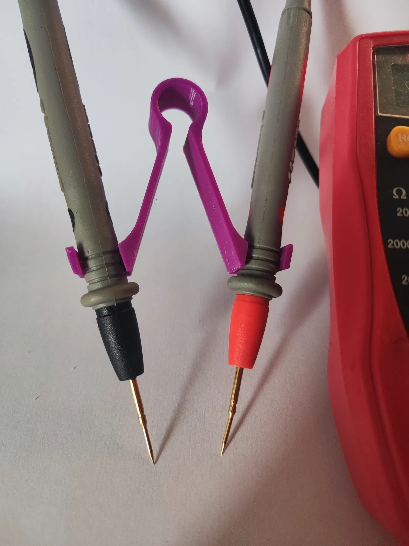 Cái tool này biến hai que đo multimeter tiêu chuẩn thành một cặp nhíp dò giúp bạn đo linh kiện và các điểm tiếp xúc chỉ bằng một tay. Lý tưởng cho các linh kiện SMD, không gian chật hẹp, hoặc những lúc bạn cần rảnh một tay để giữ bảng mạch.