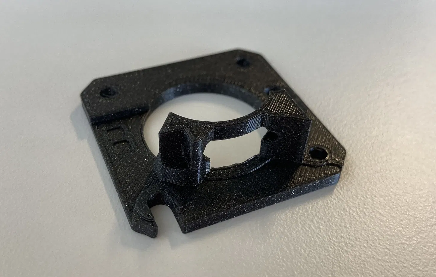 Tấm đế chính Nextruder được chỉnh sửa nhẹ này được thực hiện do vài lần kẹt sợi in, khi sợi dẻo (Shore 90A) bị kẹt giữa bánh răng chính của extruder và động cơ bước.