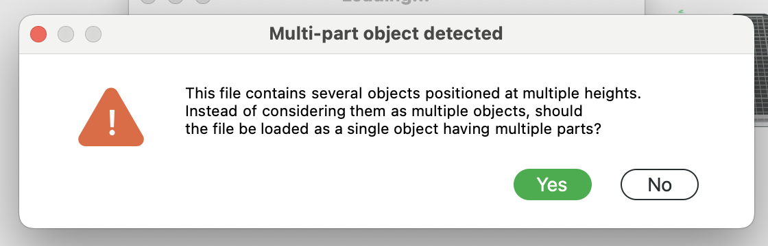 - Tải tệp .3MF vào slicer của bạn, trả lời Có khi slicer hỏi “Phát hiện đối tượng nhiều bộ phận.”