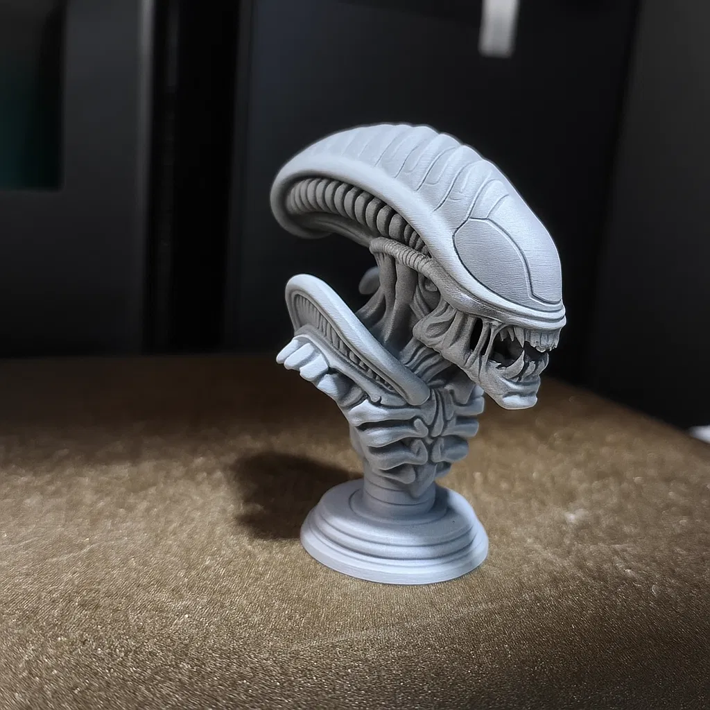 Bust này miêu tả một con Xenomorph, với những chi tiết ngoài hành tinh phức tạp lấy cảm hứng từ biểu tượng khoa học viễn tưởng. Nó thể hiện rõ các đặc điểm nổi bật như cái đầu dài, hàm răng đáng sợ và các chi tiết cơ khí sinh học đặc trưng của loài ngoài hành tinh này.