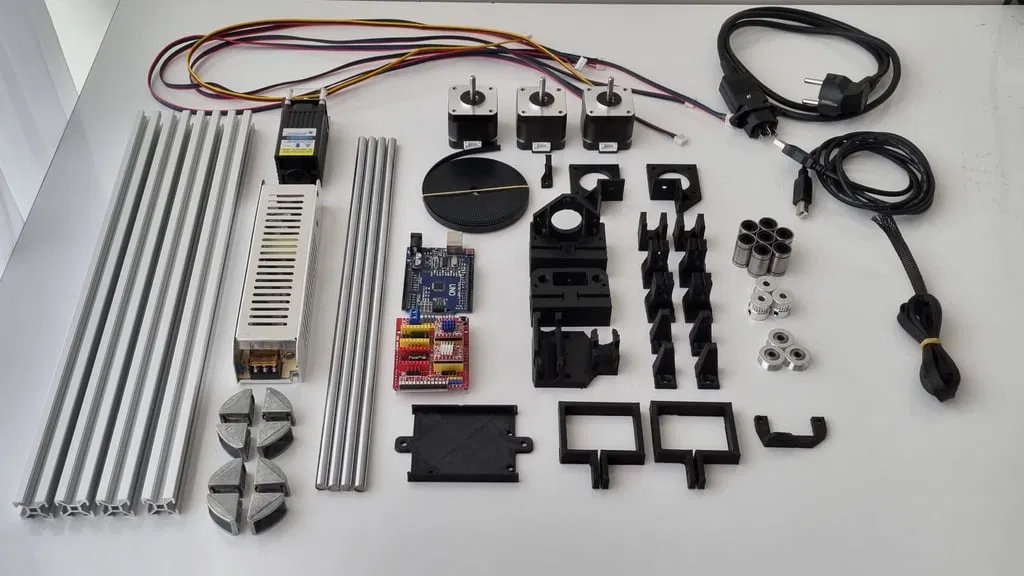 Đây là một máy khắc laser cơ bản, bạn có thể tùy chỉnh theo ý muốn. Video hướng dẫn lắp ráp và thử nghiệm có sẵn. Bao gồm danh sách chi tiết các bộ phận và ốc vít cần thiết, cùng các liên kết hữu ích.