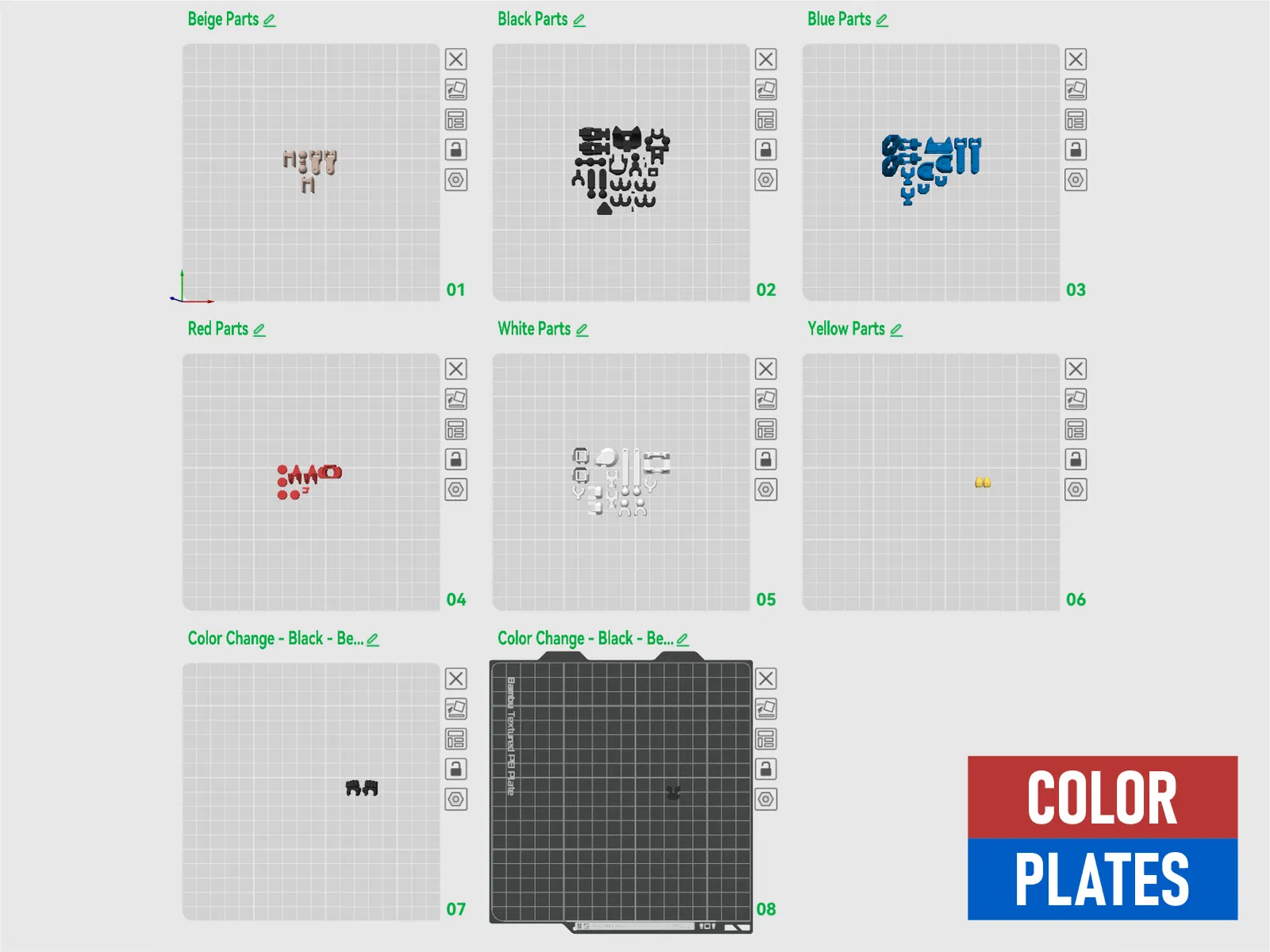 The Hands và Face Plate cần thay đổi màu sắc. Tôi đã thêm một điểm dừng trên tệp "Jumaru - Dummy 13 - All Color Plates.3mf".