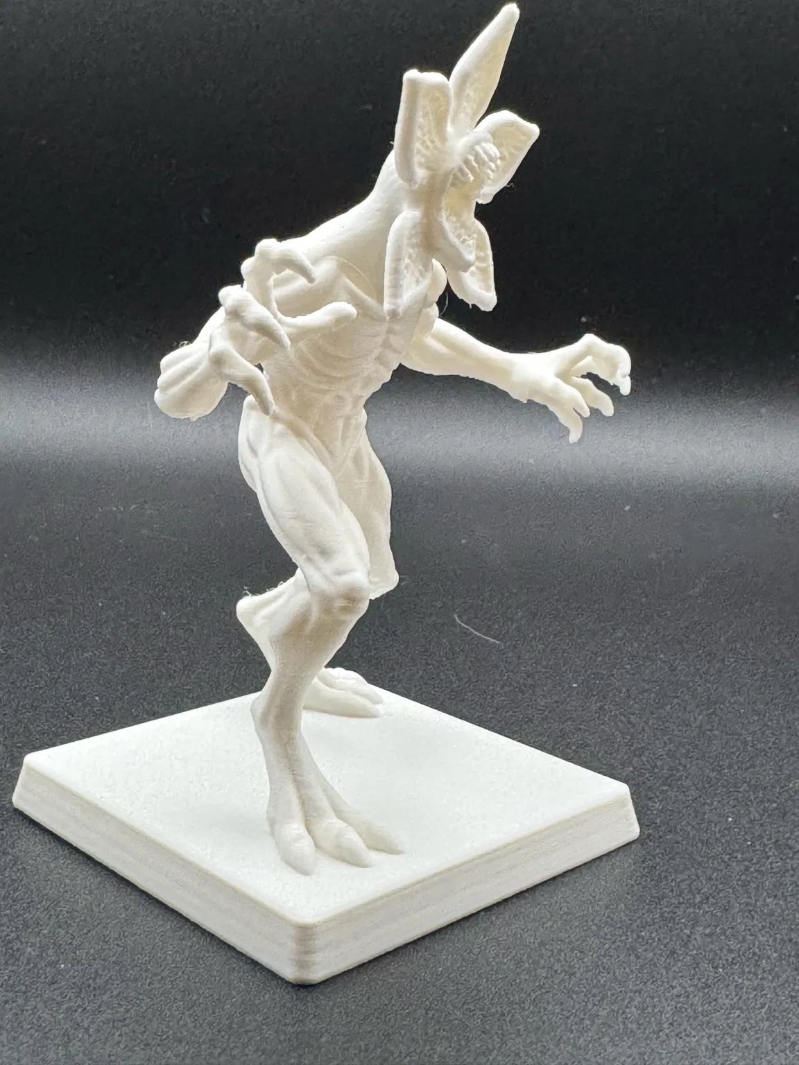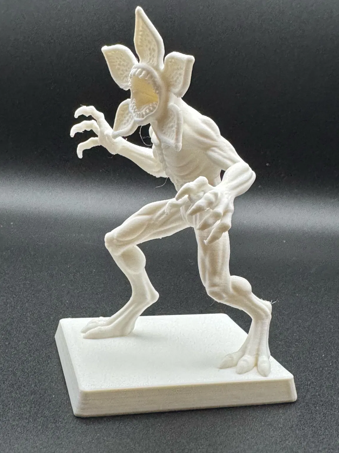Mô hình Demagorgone in bằng PLA Polymaker Polyterra Cotton White, có đế đi kèm. Mô hình này không khó in lắm đâu. Khi gỡ support, nhớ dùng lực nhẹ nhàng và các dụng cụ phù hợp như nhíp, kềm cắt mô hình nha. Chúc anh em in ấn vui vẻ!