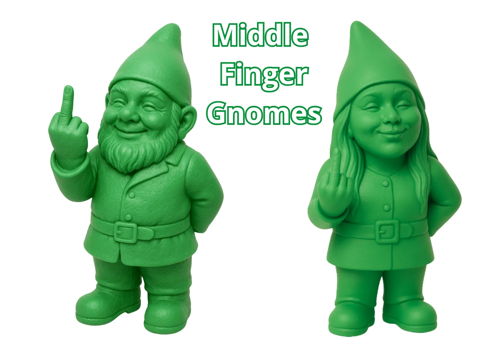 A bold twist on garden decor! Introducing the Middle Finger Garden Gnomes, bringing a rebellious and fun attitude to your outdoor space or desk. These unique figures combine classic gnome charm with a defiant gesture, perfect for adding a touch of humor and personality to your surroundings. They are crafted with attention to detail, with optimized STL files ready for your 3D printer. Please remember to use organic supports for the best results. You'll receive two distinct gnome models, each making a statement. We encourage you to share your printed creations! For commercial licensing, please visit our Patreon page.