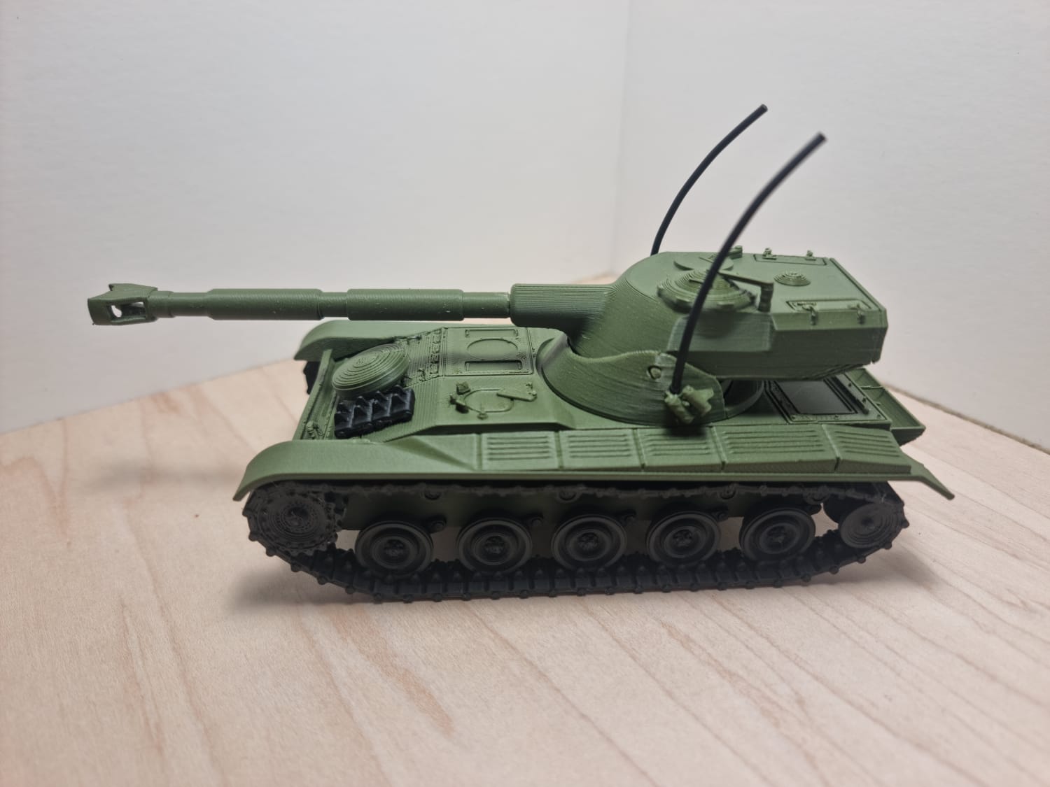 Mô hình xe tăng AMX 13 105, một biến thể của khung gầm AMX-13 được trang bị pháo 105mm mạnh mẽ. Phù hợp cho wargaming và mô hình thế giới xe tăng. Mô hình được in bằng Bambu Matte PLA và yêu cầu support cho một số bộ phận.