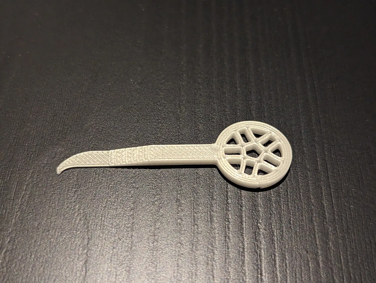 Vì phần mỏng của dụng cụ không nên dày hơn 0.5 mm, nên khi in mô hình này, bạn hãy để độ cao lớp in là 0.20 mm. Dùng PLA hoặc PETG đều ổn hết nha.