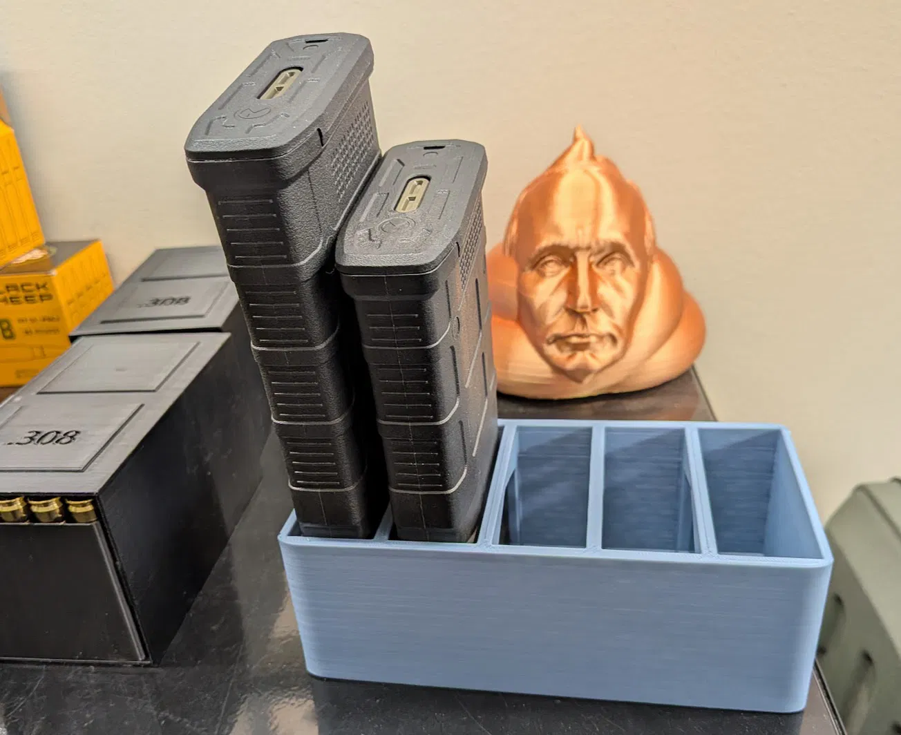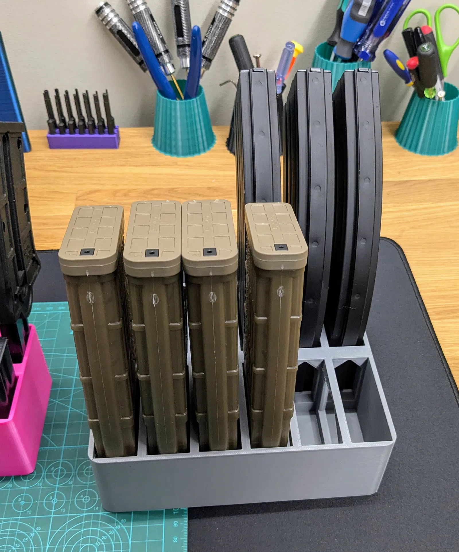 Chân đế đạn dược cơ bản cho băng đạn kép súng lục, băng đạn đơn, STANAG, và AR10. Dễ dàng in ấn mà không cần hỗ trợ, phù hợp với nhiều loại băng đạn khác nhau.