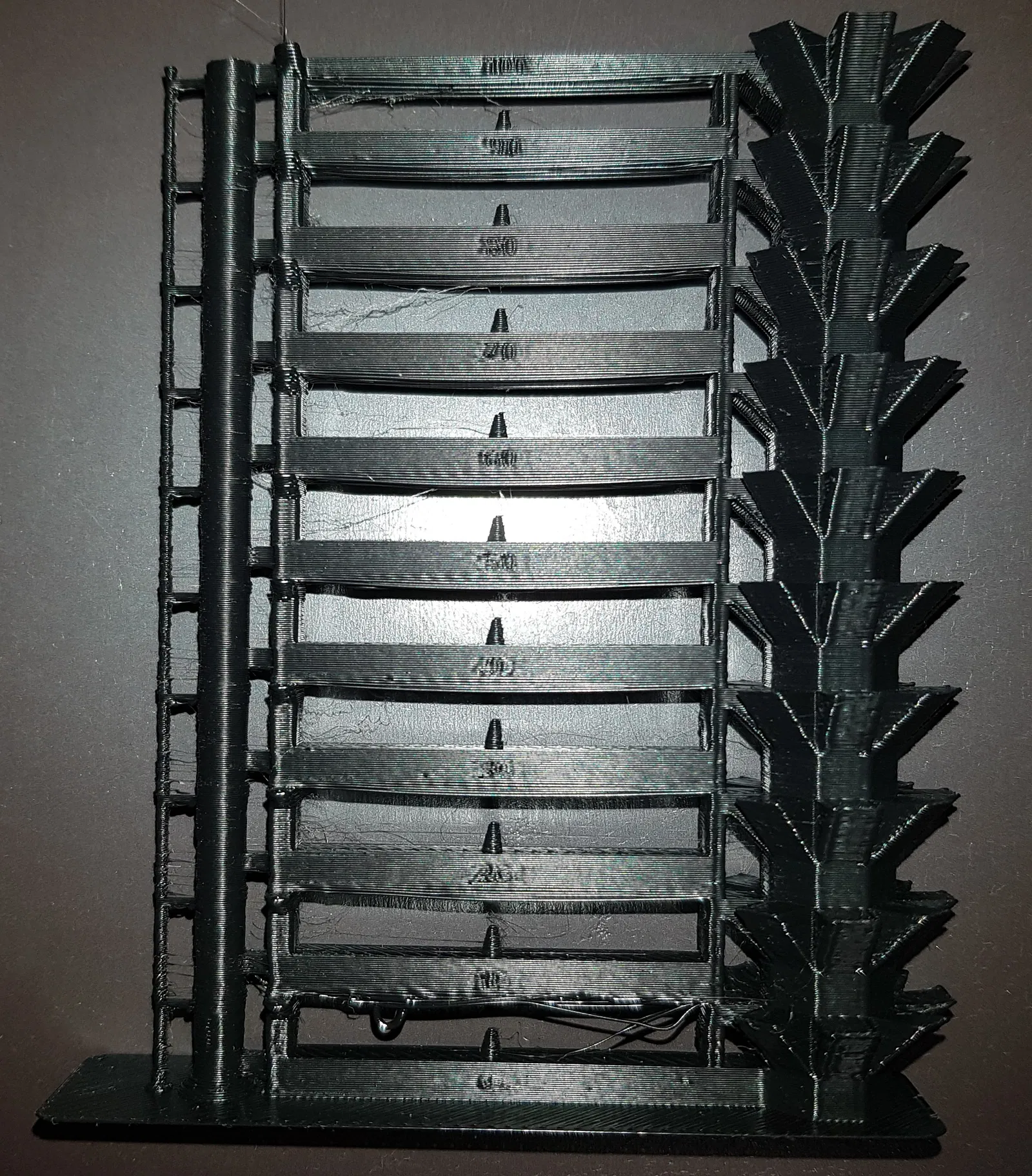 BẢN IN CỦA TÔI BỊ CONG HOẶC BỊ KẸT Ở CÁC KHU VỰC DƯỚI CÙNG VÀ TÔI KHÔNG THỂ HOÀN THÀNH THÁP! Chà, phần dưới cùng bắt đầu với rất ít hoặc không có quạt, nhưng bạn vẫn nên có thể in nó mà không gặp sự cố miễn là nhiệt độ của bạn không quá cao và nhiệt độ phòng không quá cao. Nếu bạn gặp lỗi in với bài kiểm tra này, bạn đang in quá nóng hoặc cần di chuyển máy in đến một căn phòng mát hơn.
