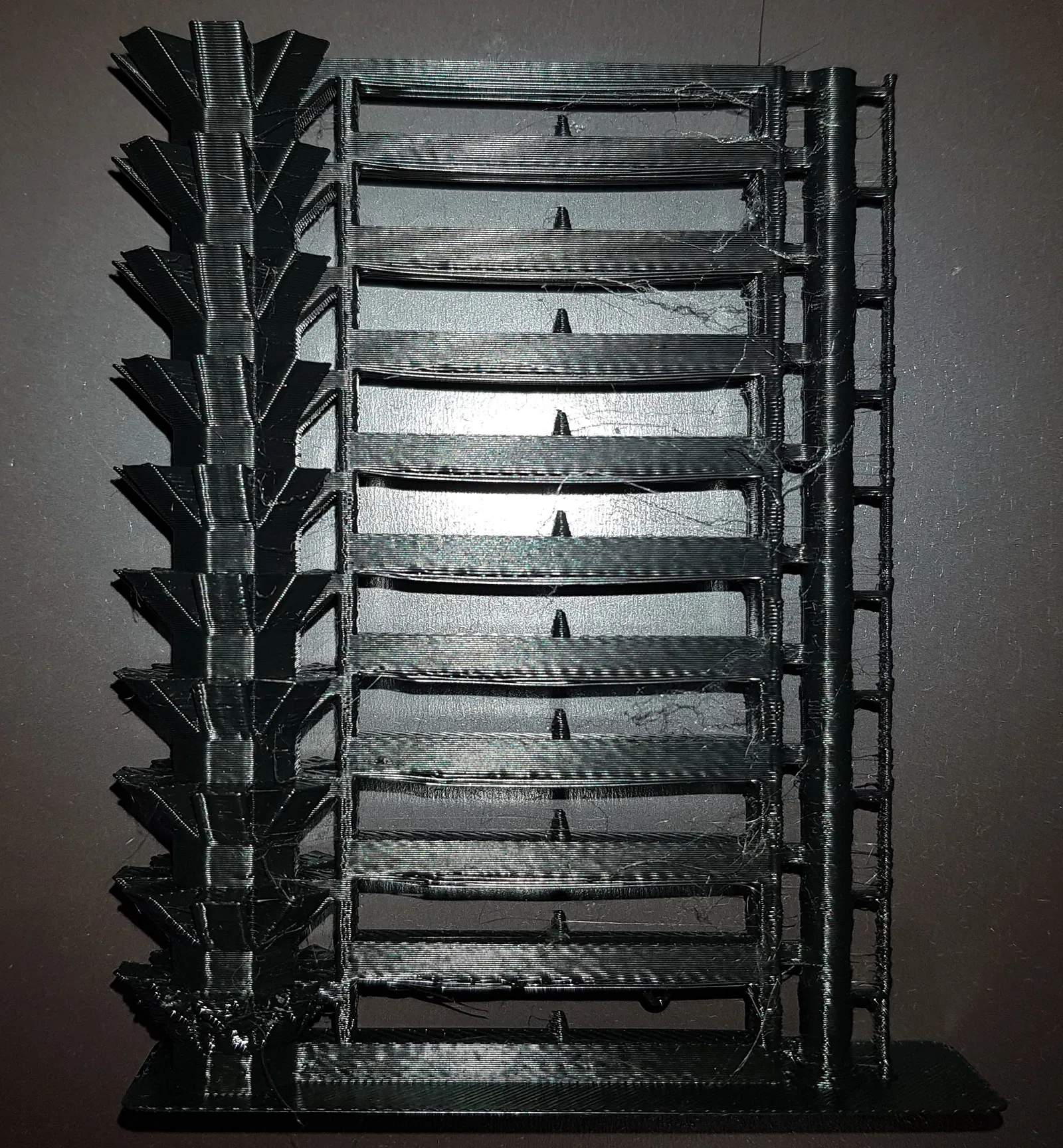 Cần xem xét: Bạn có thể xem chất lượng của các cầu nối phía trên "cửa sổ" trong bản in, chất lượng của các phần nhô ra, chất lượng các chi tiết nhỏ, các sợi nhựa thừa, và chất lượng bề mặt.